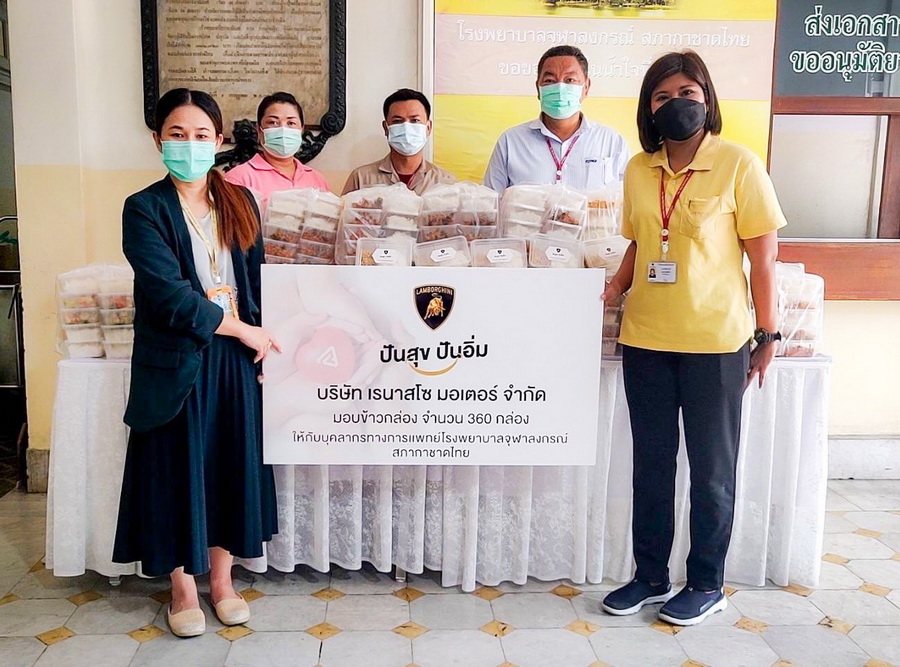 บริษัท เรนาสโซ มอเตอร์ จำกัด ตัวแทนจำหน่ายรถยนต์ลัมโบร์กินีอย่างเป็นทางการรายเดียวในประเทศไทย ตอกย้ำเจตนารมณ์ในการร่วมเป็นส่วนหนึ่งของสังคม ผุดโปรเจค "ปันสุข ปันอิ่ม" เพื่อสนับสนุนผู้ประกอบการร้านอาหารขนาดเล็กที่ได้รับผลกระทบจากสถานการณ์การระบาดของโควิด-19 ตลอดจนบรรเทาความเดือดร้อนให้แก่ผู้ติดเชื้อที่กักตัวในชุมชนในพื้นที่กรุงเทพมหานคร โดยส่งมอบอาหารกล่องที่ปรุงสดใหม่เป็นที่เรียบร้อยแล้วรวม 1,500 กล่อง ตลอดเดือนกันยายนที่ผ่านมา อาทิ ชุมชนสามัคคีร่วมใจ บางเขน, โรงพยาบาลรามาธิบดี มหาวิทยาลัยมหิดล, ชุมชนชายคลองเสนานิคม เขตจตุจักร, โรงพยาบาลจุฬาลงกรณ์ สภากาชาดไทย, ศูนย์สร้างสุขทุกวัย เขตจตุจักร