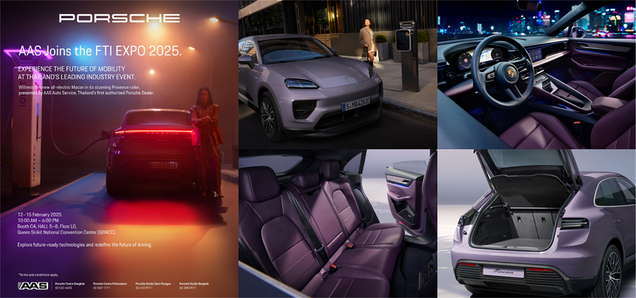 เอเอเอส ออโต้ เซอร์วิส ตัวแทนจำหน่ายรถยนต์ปอร์เช่อย่างเป็นทางการแห่งแรกในประเทศไทย ร่วมเป็นส่วนหนึ่งของงานสุดยิ่งใหญ่ที่จัดขึ้นโดยสภาอุตสาหกรรมแห่งประเทศไทย FTI EXPO 2025 ที่นำเสนอนวัตกรรมและเทคโนโลยียานยนต์แห่งอนาคตที่สะท้อนแนวคิดของงานในปีนี้อย่างลงตัว โดยกิจกรรมดังกล่าวจัดขึ้นตั้งแต่วันที่ 12–15 กุมภาพันธ์ 2568 เวลา 10:00 – 18:00 น. ณ บูธ C4 ฮอลล์ 5–8 ชั้น LG ศูนย์การประชุมแห่งชาติสิริกิติ์