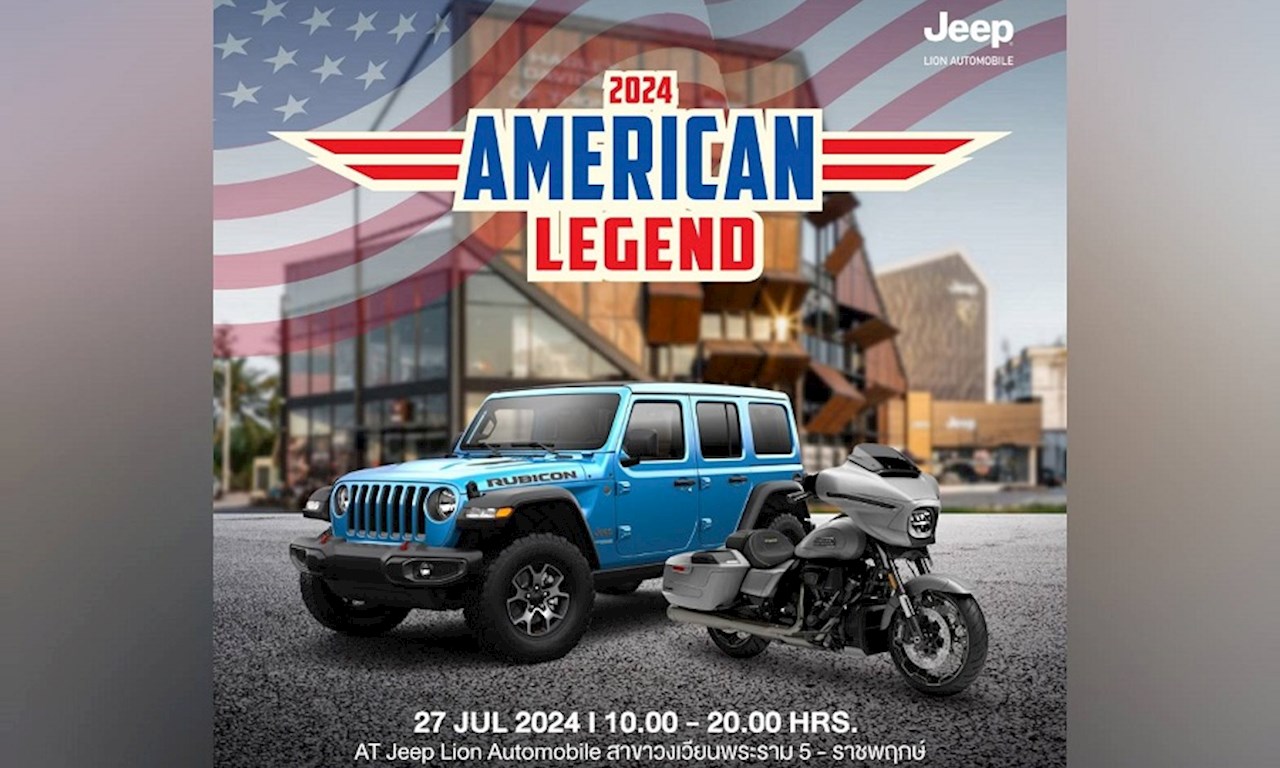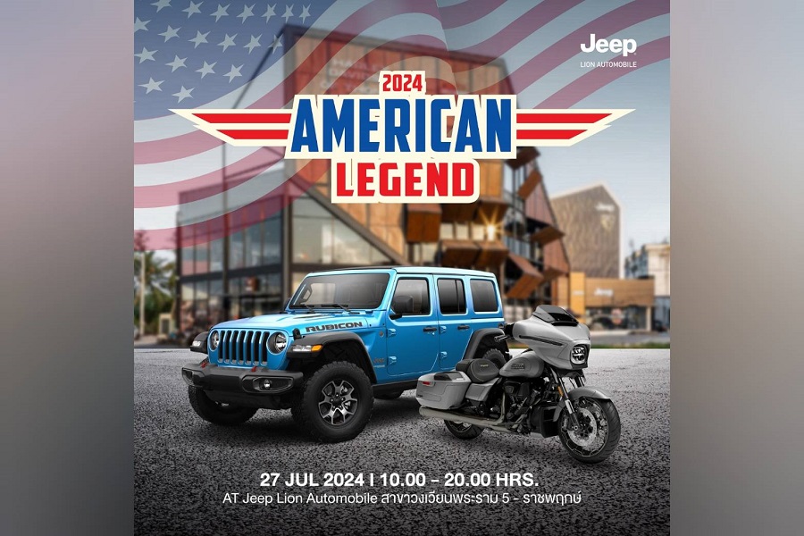 กลับมาอีกครั้งกับการรวมตัวกันของที่สุดแห่งความเป็นตำนานสัญชาติอเมริกัน จี๊ป ไลอ้อน ออโตโมบิล ผู้จำหน่ายรถยนต์ จี๊ป อย่างเป็นทางการในประเทศไทย ร่วมกับ ยูเอส มอเตอร์ไบค์ ผู้จำหน่ายมอเตอร์ไซค์ ฮาร์ลีย์-เดวิดสัน อย่างเป็นทางการ จัดงาน ‘American Legend’ สร้างปรากฏการณ์เร้าใจ เชิญชวนเปิดประสบการณ์ทดลองขับครั้งแรกในเมืองไทย กับรถยนต์ จี๊ป แกรนด์ เชอเรอกี ซัมมิท รีเซิร์ฟ โฟว์บายอี ปลั๊ก-อินไฮบริด (Jeep Grand Cherokee Summit Reserve 4xe Plug-in Hybrid), จี๊ป แรงเลอร์ รูบิคอน และมอเตอร์ไซค์ ฮาร์ลีย์-เดวิดสัน รุ่น CVO Road Glide ST ปี 2024 รวมถึงรุ่นอื่น ๆ พร้อมคัดสรรข้อเสนอสุดพิเศษ จัดหนักจัดเต็ม เพื่อสายลุยโดยเฉพาะ!