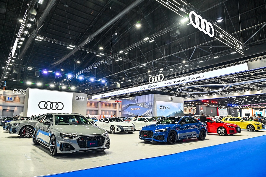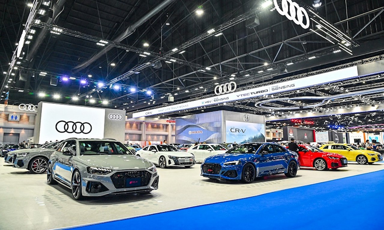 RS e-tron GT Quattro ยานยนต์พลังงานไฟฟ้า 100% เผยโฉมครั้งแรกในงาน Motor Show 2023 ขับเคลื่อนด้วยมอเตอร์ไฟฟ้า พละกำลัง 646 แรงม้า ทำงานควบคู่กับ electric quattro อัตราเร่งจาก 0-100 กิโลเมตรต่อชั่วโมง เพียง 3.3 วินาทีใน boost mode ความเร็วสูงสุด 250 กิโลเมตรต่อชั่วโมง ความจุแบตเตอรี่ไฟฟ้าแรงสูงลิเธียมไอออนขนาด 93.4 กิโลวัตต์ต่อชั่วโมง ขับได้ระยะทางไกลกว่า 500 กิโลเมตรต่อการชาร์จหนึ่งครั้ง ใช้เวลาเพียง 22.5 นาที ในการชาร์จพลังงานจากสถานี DC Fast Charge อาวดี้ ประเทศไทย ได้นำรถอีก 2 รุ่นมาเปิดตัวในงาน ได้แก่ Audi A4 40 TFSI S line Icon Black และ A4 Avant 45 TFSI quattro S line Icon Black 2