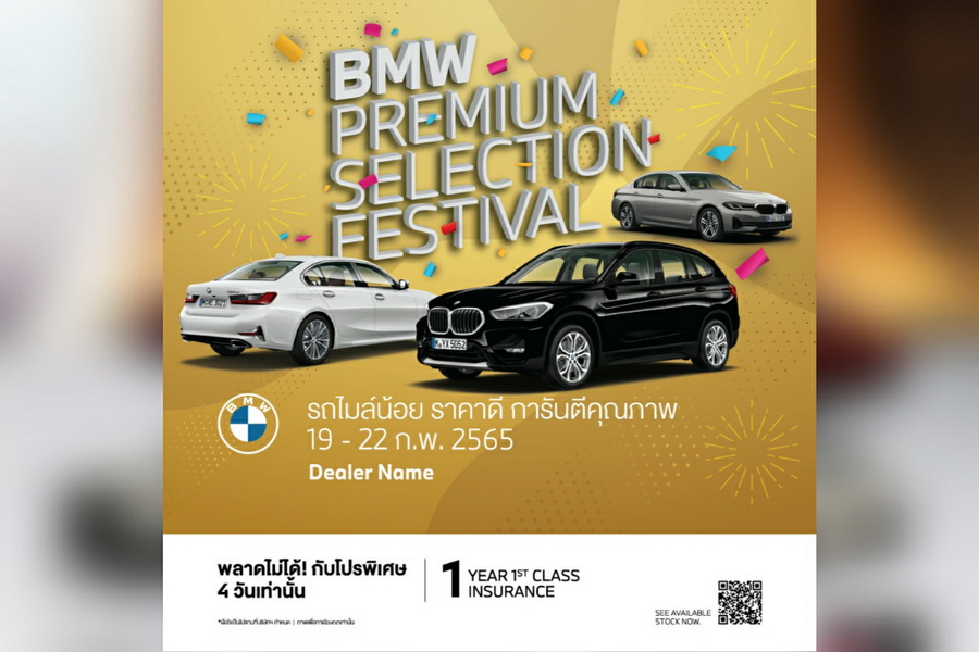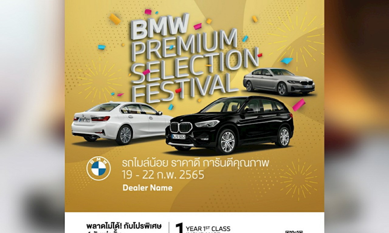 มิลเลนเนียม ออโต้ กรุ๊ป จัดกิจกรรมพิเศษ ‘BMW Premium Selection Festival’ ยกทัพรถผู้บริหาร บีเอ็มดับเบิลยู ป้ายแดง ไมล์น้อย ราคาดี การันตีคุณภาพ มาให้เป็นเจ้าของในราคาสุดพิเศษ พร้อมรับฟรี! ประกันภัยชั้น 1 นาน 1 ปี*