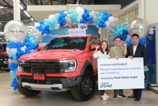 ฟอร์ด ประเทศไทย มอบรางวัลใหญ่รถยนต์ฟอร์ด เรนเจอร์ แร็พเตอร์ รุ่น 2.0 ลิตร ดีเซล จำนวน 1 รางวัล มูลค่า 1,779,000 บาท ให้นายศตวรรษ ไชยสัจ ลูกค้าผู้โชคดี เจ้าของรถฟอร์ด เอเวอเรสต์ สปอร์ต ที่ซื้อรถจากแคมเปญ Ford Motor Expo #ซื้อรถลุ้นรถ โดยในวันส่งมอบรถ นายรัฐการ จูตะเสน กรรมการผู้จัดการ ฟอร์ด ประเทศไทย เป็นผู้มอบรางวัล ณ โชว์รูมฟอร์ด พระนคร บางแค