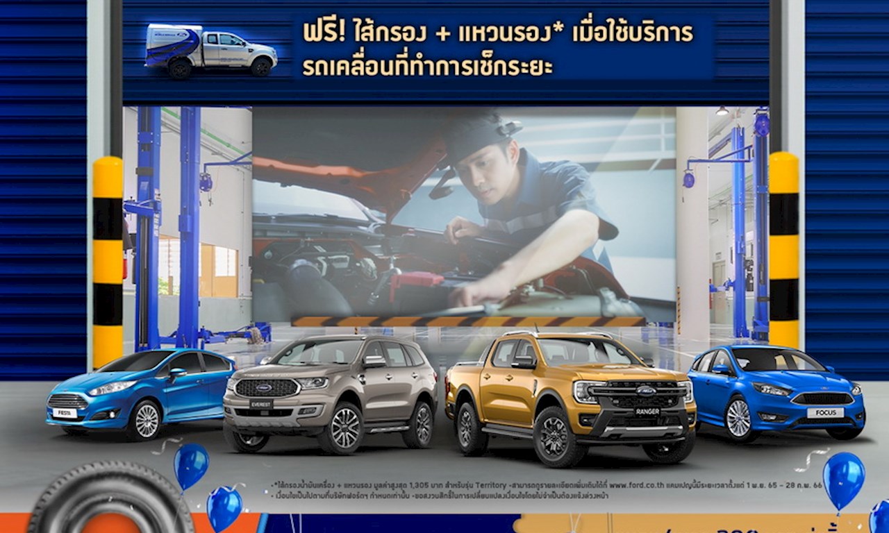 ฟอร์ด ประเทศไทย จัดแคมเปญพิเศษมอบข้อเสนอสุดคุ้มด้านบริการที่คัดสรรมาให้ลูกค้าฟอร์ดอุ่นใจตลอดการเดินทาง ไม่ว่าจะเป็นส่วนลดสำหรับโปรแกรมน้ำมันเครื่องสุดคุ้ม ส่วนลดสำหรับโปรแกรมบำรุงรักษารถยนต์ (SSP) ซื้อยางรถยนต์ 3 เส้น แถมฟรี 1 เส้น รวมถึงส่วนลดเมื่อเข้ารับบริการเปลี่ยนแบตเตอรี่หรือผ้าเบรก และบริการตรวจเช็คสภาพรถ 30 รายการฟรี นอกจากนี้ ลูกค้าที่ใช้บริการเช็กระยะจากรถให้บริการเคลื่อนที่ (Mobile Service Vehicle) จะได้รับฟรีไส้กรองน้ำมันเครื่องและแหวนรอง โดยลูกค้าฟอร์ดที่สนใจสามารถนำรถเข้ารับบริการได้ที่ศูนย์บริการฟอร์ดทั่วประเทศ ตั้งแต่วันนี้ ถึง 28 กุมภาพันธ์ 2566