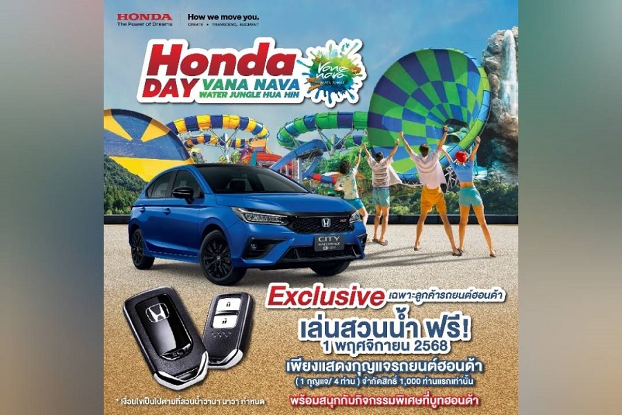 ฮอนด้า จัดใหญ่แบบเต็ม Max ให้ครอบครัวฮอนด้าได้สนุกสุดมันส์ใน Honda Day 2025 ในวันที่ 1 พฤศจิกายน 2568 ที่สวนน้ำ วานา นาวา หัวหิน กับเครื่องเล่นสวนน้ำมาตรฐานโลกกว่า 19 เครื่องเล่น และสไลเดอร์มากมาย ในบรรยากาศสวนน้ำสไตล์ป่าเขตร้อนแห่งแรกของเอเชีย