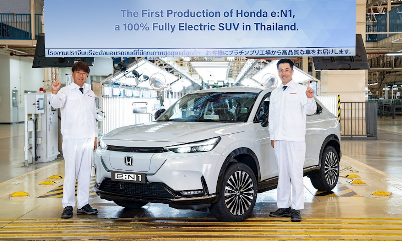 เมื่อต้นเดือนธันวาคม 2566 ที่ผ่านมา บริษัท ฮอนด้า ออโตโมบิล (ประเทศไทย) จำกัด เปิดสายการผลิต Honda e:N1 ยนตรกรรมเอสยูวีพลังงานไฟฟ้า 100% ณ โรงงานฮอนด้า สวนอุตสาหกรรมโรจนะ จ.ปราจีนบุรี โดยฮอนด้านับเป็นแบรนด์รถยนต์ญี่ปุ่นหลักที่เริ่มเดินสายการผลิตรถยนต์นั่งไฟฟ้าเป็นครั้งแรกในประเทศไทย ภายใต้มาตรฐานการผลิตด้วยเทคโนโลยีอันล้ำสมัยระดับโลกของฮอนด้า การเปิดสายการผลิต Honda e:N1 ยนตรกรรมเอสยูวีพลังงานไฟฟ้า 100% ในประเทศไทย นับเป็นก้าวสำคัญของฮอนด้า ที่แสดงถึงความเชื่อมั่นว่าฮอนด้ายังคงให้ความสำคัญอย่างยิ่งกับการดำเนินธุรกิจในประเทศไทย ทั้งยังเป็นการสร้างมูลค่าเพิ่มให้แก่อุตสาหกรรมยานยนต์ในประเทศไทยทั้งจากการผลิตและการใช้ชิ้นส่วนในประเทศ