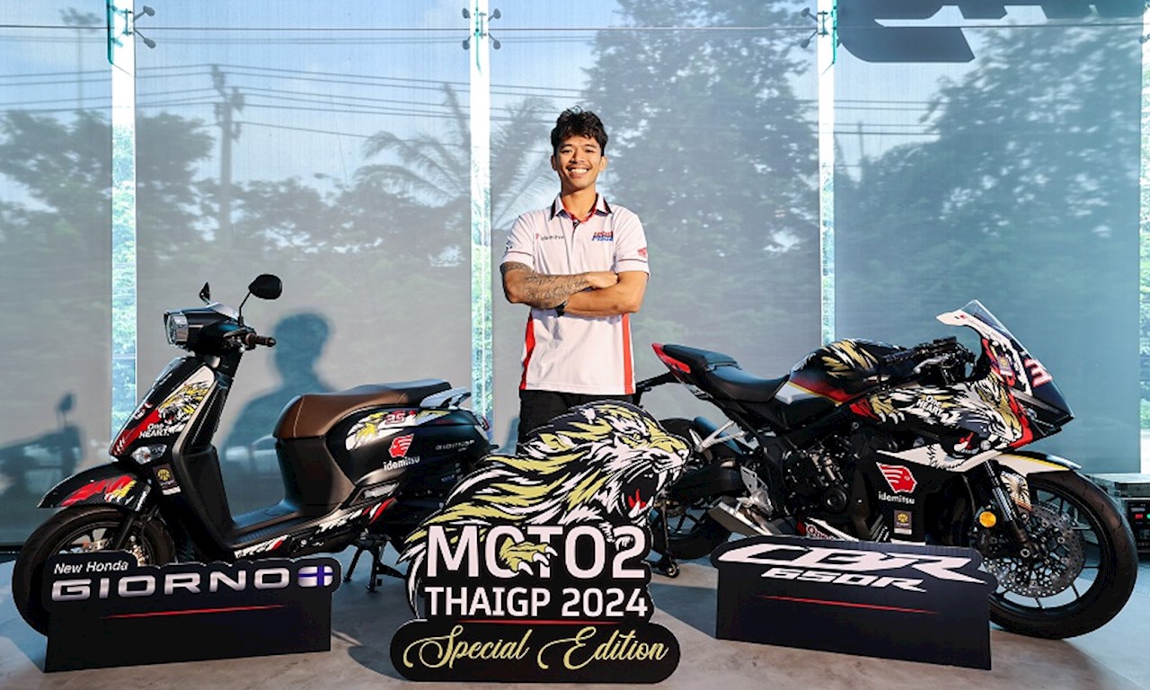 ไทยฮอนด้า เอาใจแฟนพันธุ์แท้มอเตอร์สปอร์ต เปิดตัวรถลายพิเศษ 2 รุ่น ได้แก่ “New Honda Giorno+ Moto2 ThaiGP 2024 Limited Edition” ผลิตจำนวนจำกัดเพียง 35 คันในโลกเท่านั้น และ“Honda CBR650R Moto2 ThaiGP 2024 Special Edition” โดยได้นำเสนอลวดลายที่สะท้อนจากรถแข่งที่ “ก้อง-สมเกียรติ จันทรา” จะใช้ลงแข่งล่าแชมป์ในไทยจีพี 2024 นี้ โดยได้แรงบันดาลใจของ “ก้อง-สมเกียรติ” ถ่ายทอดลงบนตัวรถให้แฟนพันธุ์แท้ได้มีโอกาสเป็นเจ้าของในแบบลิมิเต็ดขั้นสุด เปิดรับจองเฉพาะในงานไทยจีพี 2024 นี้เท่านั้น