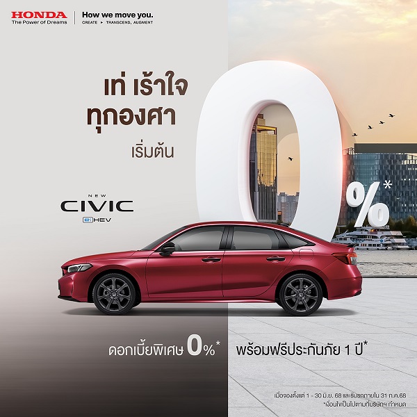 ลูกค้าที่กำลังมองหารถใหม่อยู่ ห้ามพลาด! บริษัท ฮอนด้า ออโตโมบิล (ประเทศไทย) จำกัด ส่งโปรโมชันพิเศษกลางปีสุดคุ้มค่า ด้วยรถฮอนด้าหลากหลายรุ่นที่พร้อมตอบโจทย์ไลฟ์สไตล์ กับหลากหลายข้อเสนอ* ให้คุณเลือก ไม่ว่าจะเป็นสายดอกเบี้ย 0% ผ่อนชิล ๆ พร้อมฟรีประกันภัย หรือ ฟรี Honda Exclusive Care แพ็กเกจสุดคุ้ม ครอบคลุมตั้งแต่วันออกรถใหม่ มอบความอุ่นใจในระยะยาวสูงสุด 5 ปี หรือ 140,000 กม.* หรือเลือกรับโปร ‘Double Smile Plus’ กับช้อยส์ที่ตรงใจสไตล์คุณ ออกรถที่ใช่ ดาวน์น้อยเริ่มต้นเพียง 10% หรือผ่อนน้อย ค่างวดต่อเดือนสบาย ๆ ก็เป็นเจ้าของรถฮอนด้าได้ง่าย ๆ เสริมความมั่นใจยิ่งขึ้นในการเป็นเจ้าของรถฟูลไฮบริด e:HEV ของฮอนด้าทุกรุ่น ด้วยการรับประกันอายุการใช้งานแบตเตอรี่ไฮบริดถึง 10 ปี พิเศษยิ่งขึ้นกับแคมเปญ Honda Happy Trade-in รถเก่าแลกซื้อรถใหม่** เมื่อนำรถยนต์คันเก่ามาขาย และออกรถยนต์ฮอนด้าคันใหม่รุ่นที่ร่วมรายการที่โชว์รูมฮอนด้า รับสิทธิพิเศษเพิ่มเติมสูงสุดถึง 100,000 บาท* สำหรับลูกค้าที่จองตั้งแต่ 1 มิถุนายน 2568 – 30 มิถุนายน 2568 และรับรถภายใน 31 กรกฎาคม 2568