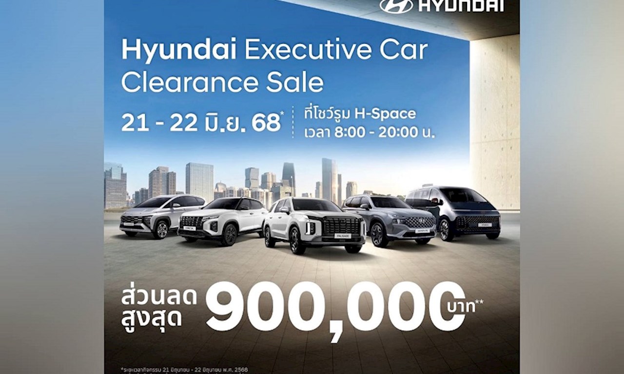 ฮุนได โมบิลิตี้ (ประเทศไทย) ขอเชิญสัมผัสประสบการณ์เลือกซื้อรถยนต์ผู้บริหารไมล์น้อยคุณภาพระดับพรีเมียมในราคาที่คุ้มเกินคาด “Hyundai Executive Car, Clearance Sale” ครั้งแรกของงานรถไมล์น้อยป้ายแดงและรถยนต์จัดแสดงสภาพเยี่ยมจากฮุนได พร้อมข้อเสนอสุดเร้าใจ จัดเต็มครบทุกรุ่นทุกเซกเมนต์ โอกาสดี ๆ มีแค่ 2 วันเท่านั้น วันที่ 21–22 มิถุนายนนี้เท่านั้น ณ โชว์รูม Hyundai H-Space วิภาวดี 8 โมงเช้า ถึง 8 โมงเย็น จำนวนจำกัด