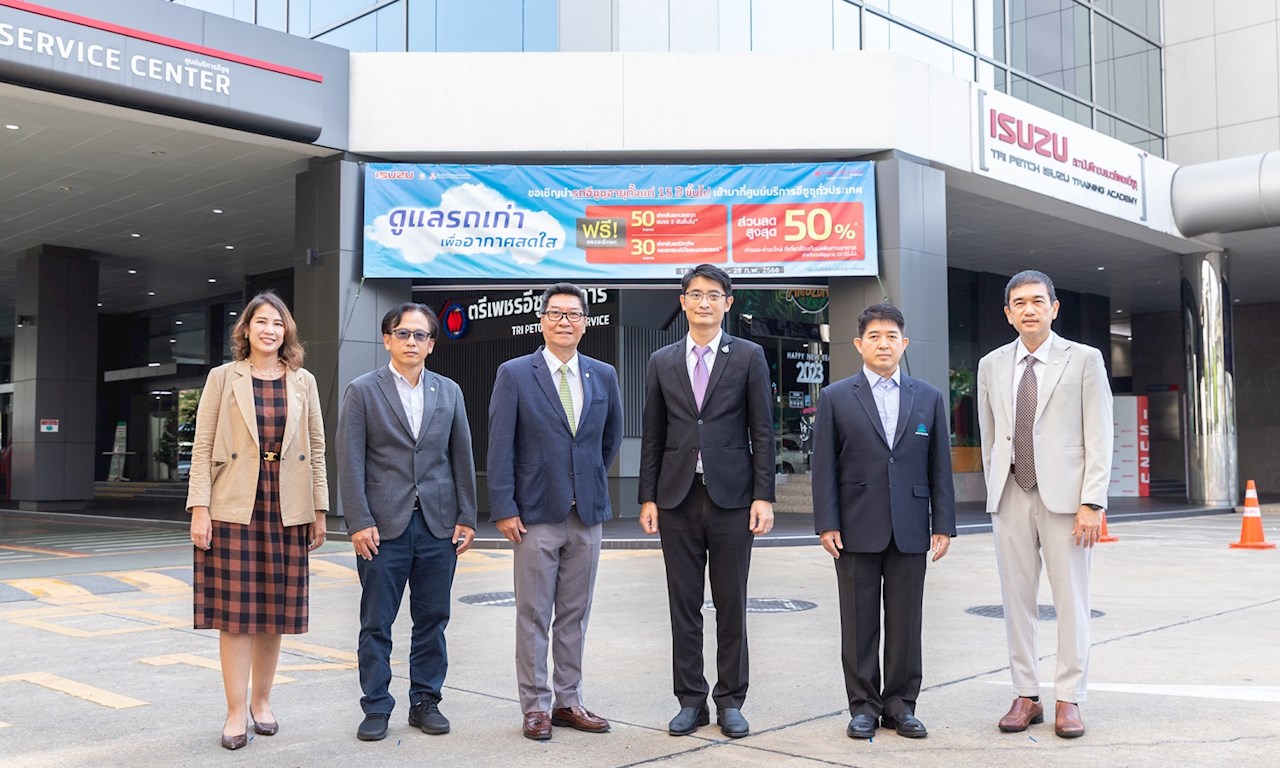 กลุ่มตรีเพชร โดย คุณวิชัย สินอนันต์พัฒน์ กรรมการ บริษัท ตรีเพชรอีซูซุเซลส์ จำกัด กล่าวเพิ่มเติมว่า “วิกฤตฝุ่น PM2.5 เป็นปัญหามลพิษทางอากาศที่มาตามฤดูกาล โดยส่วนใหญ่จะเกิดในช่วงธันวาคม – กุมภาพันธ์ของทุก ๆ ปี เนื่องจากเป็นช่วงที่มีความกดอากาศสูง อากาศนิ่งและลมสงบ แม้ว่าปริมาณมลพิษจากรถยนต์ยังคงเท่าเดิม แต่ในช่วงนี้จะมีการเผาเศษวัสดุทางการเกษตรเพิ่มขึ้นจึงทำให้เกิดปัญหาได้ โดยเฉพาะรถที่มีอายุมากที่ขาดการบำรุงรักษาที่ถูกต้องและสมบูรณ์ ทางอีซูซุจึงร่วมมือกับกรมควบคุมมลพิษ ได้จัดกิจกรรมชื่อ โครงการ “ดูแลรถเก่า เพื่ออากาศสดใส” เพื่อบรรเทาปัญหามลพิษดังกล่าว โดยรถอีซูซุที่มีอายุตั้งแต่ 15 ปีขึ้นไป สำหรับรถปิกอัพและรถนั่งอเนกประสงค์อีซูซุตรวจเช็กฟรี 30 รายการ สำหรับรถบรรทุกขนาดกลางและใหญ่อีซูซุ ตรวจเช็กฟรี 50 รายการ รวมทั้งมีส่วนลด 30% สำหรับค่าแรงและค่าอะไหล่ที่เกี่ยวข้องกับการปล่อยมลพิษ เช่น ไส้กรองน้ำมันเชื้อเพลิง ไส้กรองอากาศ ไส้กรองน้ำมันเครื่อง สำหรับรถที่มีอายุตั้งแต่ 20 ปีขึ้นไป จะได้รับส่วนลดค่าแรงและค่าอะไหล่ถึง 50 % จึงอยากขอเชิญชวนเจ้าของรถอีซูซุทุกท่านที่มีอายุตั้งแต่ 15 ปีขึ้นไป นำรถเข้าศูนย์บริการ เพื่อสุขภาพของท่าน สุขภาพของสังคมโดยรวม และเพื่ออากาศที่สดใสร่วมกันครับ”