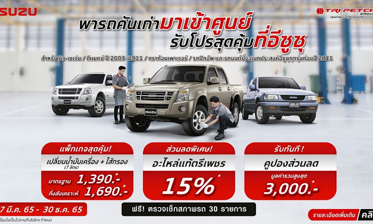อีซูซุคันเก่าของท่านเข้ารับบริการที่ศูนย์บริการมาตรฐานอีซูซุตามเงื่อนไข