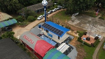 สำหรับโรงเรียนบ้านดินโส เป็นโรงเรียนขนาดกลาง ตั้งอยู่ในอำเภอทองผาภูมิ จังหวัดกาญจนบุรี เปิดสอนตั้งแต่อนุบาล 2 ถึงมัธยมศึกษาปีที่ 3 มีนักเรียน คุณครู และบุคลากรทั้งสิ้นกว่า 413 คน โรงเรียนดังกล่าวประสบปัญหาการขาดแคลนแหล่งน้ำสะอาดเพื่อการอุปโภคบริโภค แม้ว่าโรงเรียนบ้านดินโสจะมีบ่อน้ำใช้เพื่ออุปโภคแต่น้ำสำหรับบริโภคต้องแบ่งใช้กับชาวบ้านจากบ่อน้ำของชุมชน ซึ่งมีปริมาณจำกัด และยังต้องผ่านเครื่องกรองน้ำที่มีการชำรุดบ่อยครั้ง ทำให้โรงเรียนต้องมีการจัดซื้อน้ำดื่มสะอาดเพื่อการบริโภคเพิ่มเติม อีซูซุจึงส่งทีมงาน ลงพื้นที่พร้อมเจ้าหน้าที่กรมทรัพยากรน้ำบาดาลสำรวจปัญหาและติดตั้งระบบน้ำดื่มสะอาดที่ประกอบด้วย ระบบบ่อน้ำบาดาลครบวงจร ระบบกรองน้ำดื่มสะอาดตามมาตรฐาน อาคารผลิตน้ำดื่ม พร้อมจัดอบรมวิธีการใช้งาน การทำความสะอาด และการบำรุงรักษาให้แก่บุคลากรที่รับผิดชอบ รวมทั้งการเข้าไปตรวจสอบคุณภาพน้ำให้ได้มาตรฐานอย่างสม่ำเสมอ เพื่อให้นักเรียนและบุคลากรในโรงเรียนรวมถึงชุมชนบริเวณใกล้เคียงที่ได้ประโยชน์จากน้ำสะอาด กว่า 650 ครัวเรือน 1,500 คน ได้มีน้ำดื่มสะอาดถูกหลักอนามัยบริโภคอย่างต่อเนื่องเพื่อแก้ปัญหาน้ำดื่มอย่างยั่งยืน นอกจากนี้ โครงการ “อีซูซุให้น้ำ...เพื่อชีวิต” ในปีนี้ ได้เพิ่มอุปกรณ์พิเศษในกระบวนการผลิต น้ำดื่มสะอาด นั่นคือ การติดตั้งระบบพลังงานแสงอาทิตย์ เพื่อให้สอดคล้องกับความมุ่งมั่นของอีซูซุในเรื่องความเป็นกลางทางคาร์บอน (Carbon Neutrality) ซึ่งเป็นนโยบายหลักของอีซูซุ รวมทั้งการสนับสนุนนโยบายของรัฐบาลไทยในการใช้พลังงานจากทรัพยากรทดแทน และยังช่วยลดค่าไฟฟ้าของโรงเรียนได้กว่า 3,000 บาทต่อเดือนอีกด้วย