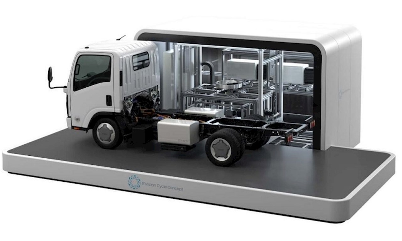 โครงการทดลองนี้จะนำเครื่องมือการใช้งานจริงของโซลูชั่นการสับเปลี่ยนแบตเตอรี่ที่เรียกว่า "EVision Cycle Concept [iii]" ซึ่งอีซูซุได้เปิดตัวที่งาน JAPAN MOBILITY SHOW 2023 เมื่อเดือนตุลาคมปีที่แล้ว โซลูชั่นการสับเปลี่ยนแบตเตอรี่สามารถสับเปลี่ยนแบตเตอรี่ที่ชาร์จเต็มแล้วได้ภายในเวลาเพียงไม่กี่นาที หลีกเลี่ยงเวลาเสียเปล่าที่เกิดจากการชาร์จแบตเตอรี่รถยนต์ไฟฟ้า (BEV) นอกจากนี้การแยกตัวรถและแบตเตอรี่ออกจากกันยังสามารถนำไปใช้ประโยชน์ในการจัดการพลังงานรูปแบบอื่นได้ เป็นต้นว่า การสนับสนุนการใช้พลังงานหมุนเวียนได้อย่างมีประสิทธิภาพ