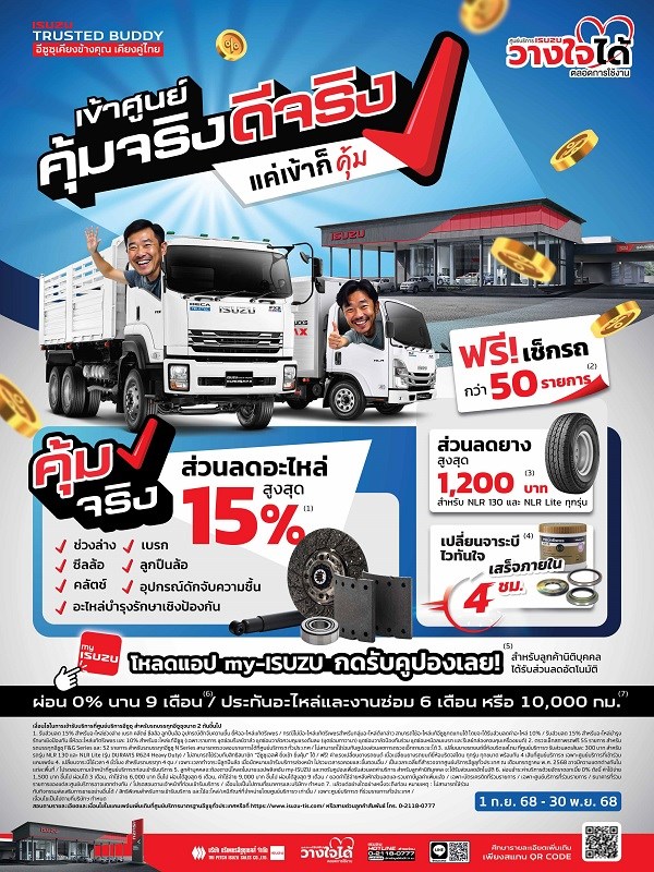 อีซูซุเชิญชวนลูกค้า “เข้าศูนย์ คุ้มจริง ดีจริง”