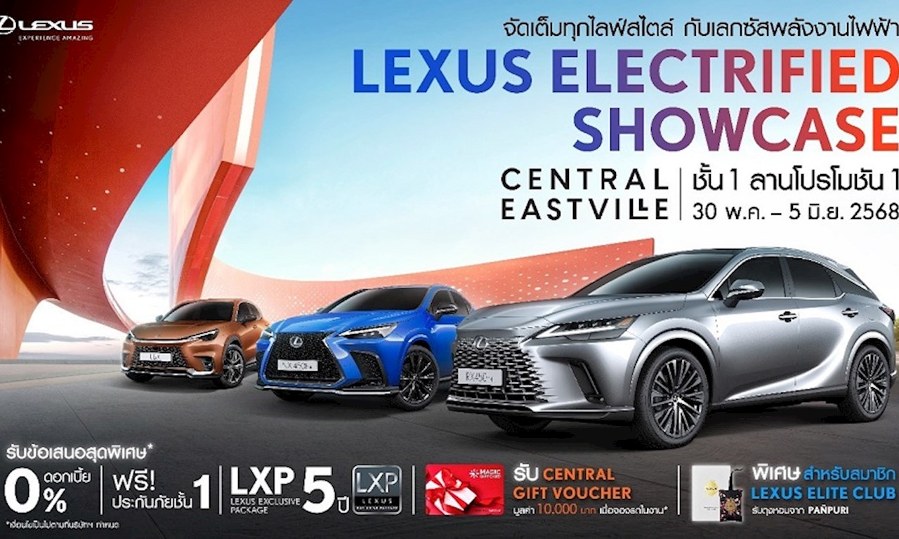 กลับมาอีกครั้งกับงาน LEXUS ELECTRIFIED SHOWCASE เลกซัสจัดเต็มทุกไลฟ์สไตล์ การขับขี่กับยนตรกรรมพลังงานไฟฟ้าหลากหลายรุ่น นำมาให้คุณได้สัมผัสถึงที่ ลานโปรโมชัน 1 ชั้น 1 เซ็นทรัล อีสต์วิลล์ ตั้งแต่วันที่ 30 พฤษภาคม – 5 มิถุนายน 2568