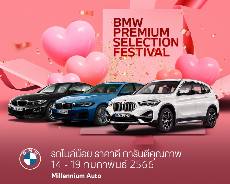 โดนใจสาวก บีเอ็มดับเบิลยู กับกิจกรรมพิเศษฉลองเทศกาลวาเลนไทน์ ‘BMW Premium Selection Festival’ ที่คัดสรรยนตรกรรมไมล์น้อย ราคาดี การันตีคุณภาพ ให้คุณอุ่นใจได้ตลอดเส้นทางด้วยมาตรฐานบริการในแบบฉบับ บีเอ็มดับเบิลยู มาพร้อมข้อเสนอสุดพิเศษ ที่จะทำให้เดือนแห่งความรักเต็มไปด้วยความสุขระดับ Premium Selection