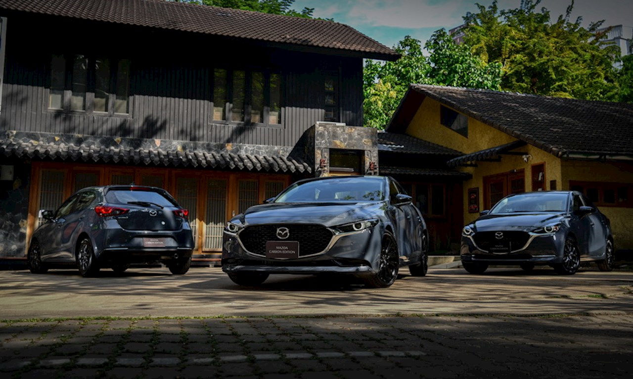 มาสด้า3 Carbon Edition รุ่นซีดาน 4 ประตู มาพร้อมกับสีภายนอกใหม่ สีเทา โพลี เมทัล เกรย์ เป็นครั้งแรก โดยการตกแต่งตัดกับสีโทนเข้ม กระจกมองข้างสีดำ ล้ออัลลอยสีดำ ขนาด 18 นิ้ว ตอบโจทย์ทุกความสปอร์ต สง่างาม เรียบหรูทุกมุมมอง ภายในตกแต่งเป็นพิเศษด้วยหนังสีดำและด้ายสีแดง พร้อมเบาะหนังสีแดง Burgundy และมอบความมั่นใจให้ทุกการเดินทางด้วยระบบแสดงภาพ 360 องศารอบทิศทาง ราคาจำหน่าย 1,210,000 บาท พร้อมข้อเสนอ ดอกเบี้ย 2.09% ฟรีประกันภัยชั้นหนึ่ง Mazda Premium Insurance 1 ปี มูลค่าสูงสุด 28,900 บาท และฟรีโปรแกรมคุ้มครองและดูแลรถ 5 ปี Mazda Ultimate Service (MUS) มูลค่าสูงสุด 50,007 บาท