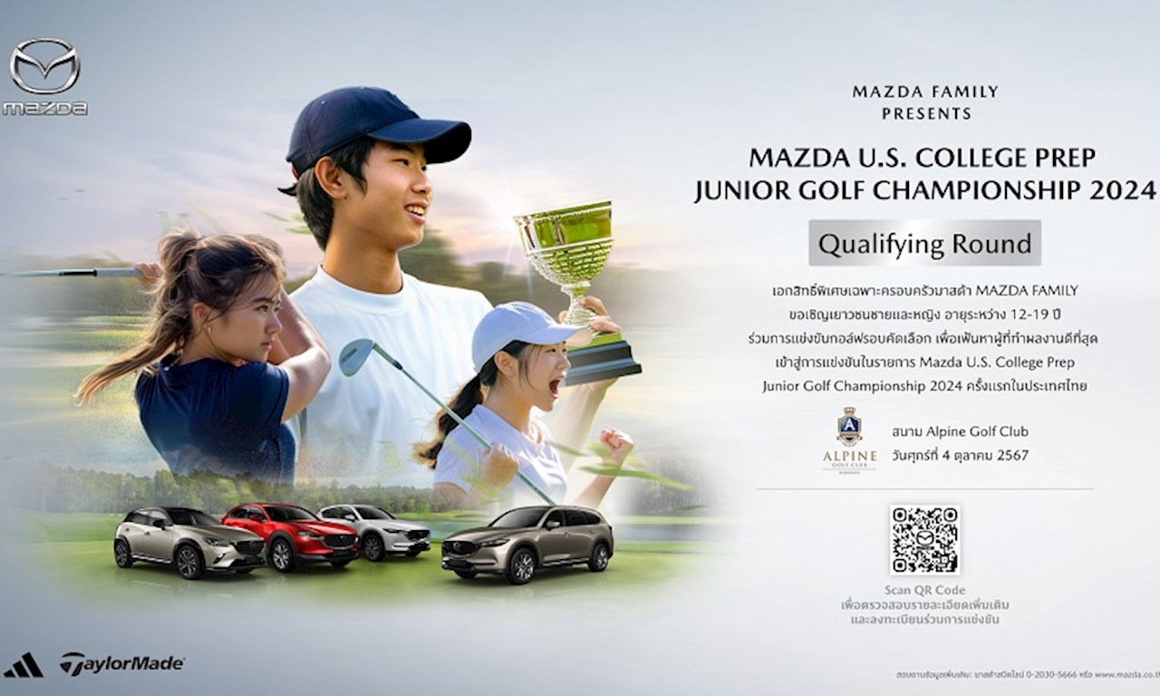 มาสด้าส่งเสริมเติมความฝันเยาวชนไทยสู่เส้นทางโปรกอล์ฟระดับโลก มอบโอกาสสุดเอ็กซ์คลูซีฟให้กับลูกค้าและครอบครัวผู้ใช้รถยนต์มาสด้า เพื่อคว้าสิทธิ์ในการเดินทางไปแข่งขันทัวร์นาเมนต์ใหญ่ในประเทศสหรัฐอเมริกา ประกาศเชิญชวนเยาวชนไทยทั้งชายและหญิงอายุระหว่าง 12-19 ปี สมัครเข้าร่วมการแข่งขันกอล์ฟรอบคัดเลือก ที่จัดขึ้นเพื่อเฟ้นหาผู้ที่ทำผลงานดีที่สุดเข้าสู่การแข่งขันรอบสุดท้ายร่วมกับนักกอล์ฟเยาวชนที่เดินทางมาจากทั่วโลก 128 คน ในโครงการ “MAZDA U.S. COLLEGE PREP JUNIOR GOLF CHAMPIONSHIP 2024” ซึ่งเป็นโครงการชั้นแนวหน้าระดับสากลที่เฟ้นหาและผลักดันเยาวชนกอล์ฟดาวเด่นให้ไปโลดแล่นบนเวทีระดับโลก ผู้ชนะเลิศจากการแข่งขันรอบสุดท้ายจะได้เดินทางไปร่วมการแข่งขันทัวร์นาเมนต์ใหญ่หลายรายการในประเทศสหรัฐอเมริกา รวมถึงเยาวชนที่มีความสามารถโดดเด่นก็มีโอกาสที่จะได้รับการเสนอทุนการศึกษาเพื่อปูทางก้าวสู่เส้นทางนักกอล์ฟมืออาชีพอีกด้วย นับเป็นโครงการดี ๆ ที่เยาวชนไทยผู้รักในกีฬากอล์ฟไม่ควรพลาด