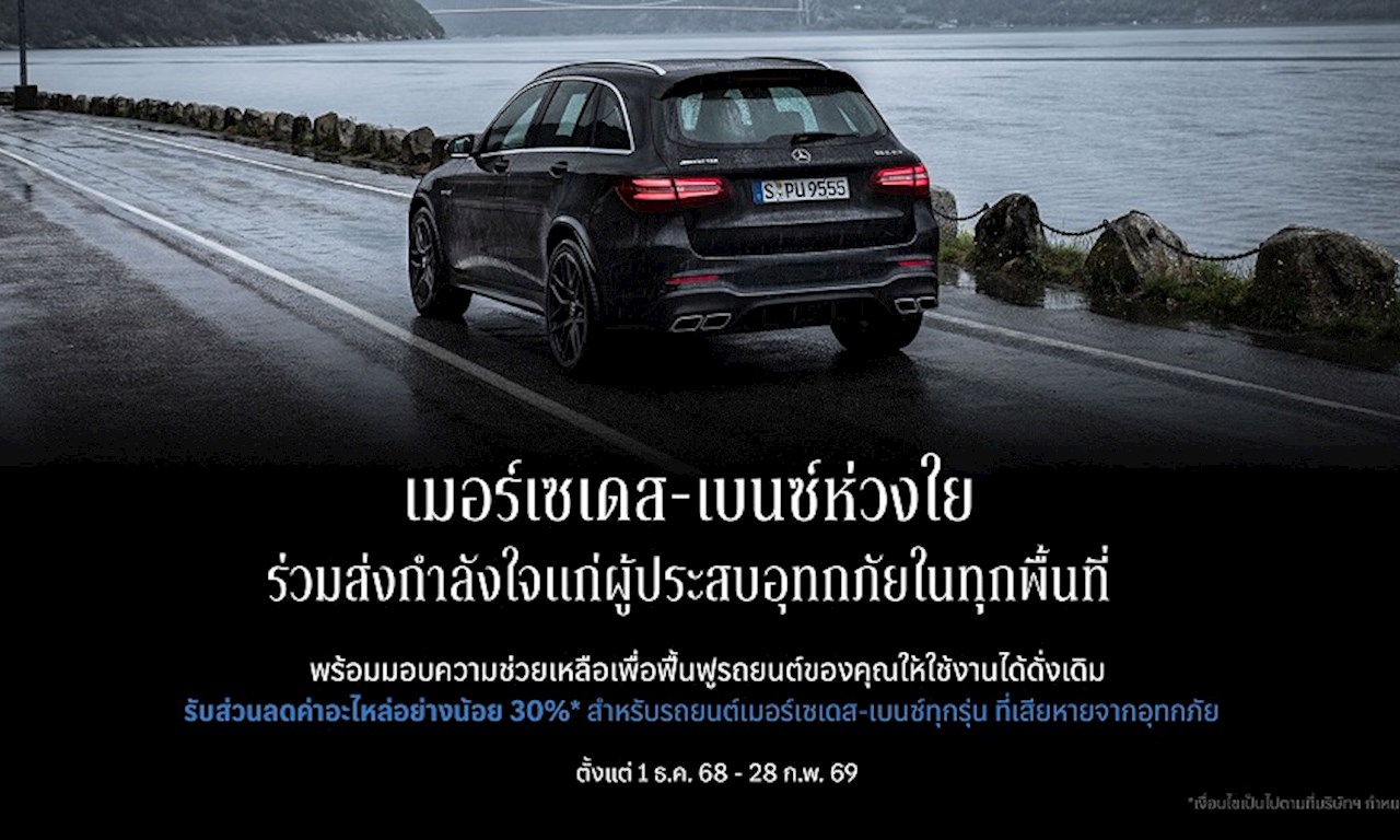 นอกจากนี้ เมอร์เซเดส-เบนซ์ พร้อมมอบส่วนลดค่าอะไหล่อย่างน้อย 30% สำหรับรถยนต์ทุกรุ่นที่ได้รับความเสียหายจากเหตุการณ์อุทกภัย เพื่อเป็นการช่วยเหลือและฟื้นฟูรถยนต์ของลูกค้าทุกคนให้กลับมาใช้งานได้ตามปกติ โดยลูกค้าที่ได้รับผลกระทบ สามารถติดต่อได้ที่ศูนย์บริการเมอร์เซเดส-เบนซ์ อย่างเป็นทางการ ตั้งแต่วันที่ 1 ธันวาคม 2568 – 28 กุมภาพันธ์ 2569