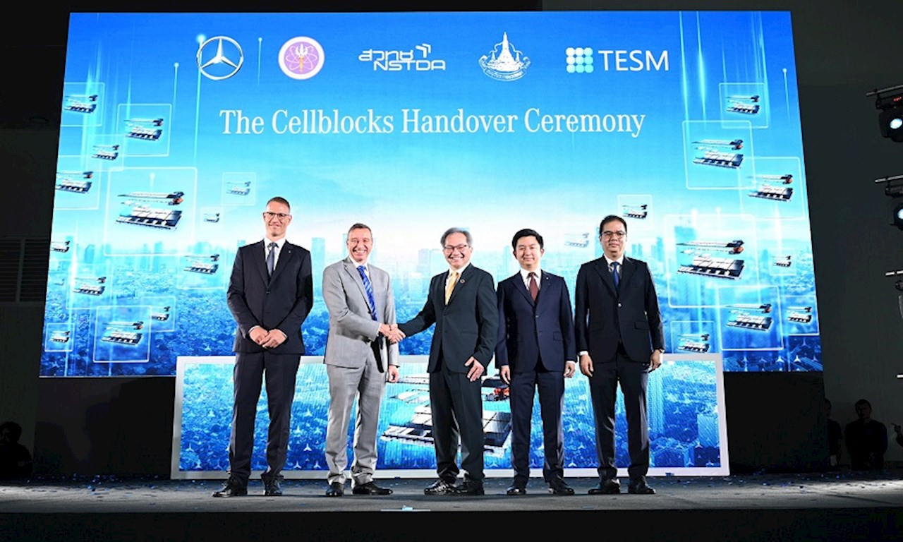 จากวิสัยทัศน์และนโยบายของแบรนด์เมอร์เซเดส-เบนซ์ ในระดับโลก ที่ขับเคลื่อนแผนงานด้านความยั่งยืนอย่างจริงจังในทุกมิติ หนึ่งในนั้นคือการผลักดันระบบเศรษฐกิจหมุนเวียน (Circular Economy) ภายใต้แนวคิด “Design for Circularity” ที่เริ่มตั้งแต่ขั้นตอนการผลิตในการเพิ่มสัดส่วนของการใช้วัสดุทดแทนที่มาจากกระบวนการรีไซเคิลชิ้นส่วนรถยนต์ ในขณะเดียวกัน เมอร์เซเดส-เบนซ์ ประเทศไทย ก็ได้เล็งเห็นประโยชน์ในการนำแบตเตอรี่แรงดันสูงที่ใช้สำหรับการทดสอบแบตเตอรี่ในกระบวนการผลิตมาพัฒนาเป็นแหล่งพลังงานที่ใช้เชื่อมต่อกับสายส่งไฟฟ้า โดยริเริ่มด้วยการลงนามบันทึกความร่วมมือ (MoU) กับสำนักงานพัฒนาวิทยาศาสตร์และเทคโนโลยีแห่งชาติ (สวทช.) พร้อมส่งมอบเซลล์แบตเตอรี่ลิเทียมไอออน (Cellblocks) ขนาด 2 เมกะวัตต์ ให้กับ สวทช. ภายในเดือนกรกฎาคม 2567 เพื่อสนับสนุนการวิจัย พัฒนา และร่วมมือถ่ายทอดเทคโนโลยีสู่สังคมไทย ทั้งยังยกระดับความสามารถของบุคลากรไทย และสนับสนุนการทดสอบแบตเตอรี่ยานยนต์ไฟฟ้าที่ผลิตในประเทศให้มีมาตรฐานระดับโลก