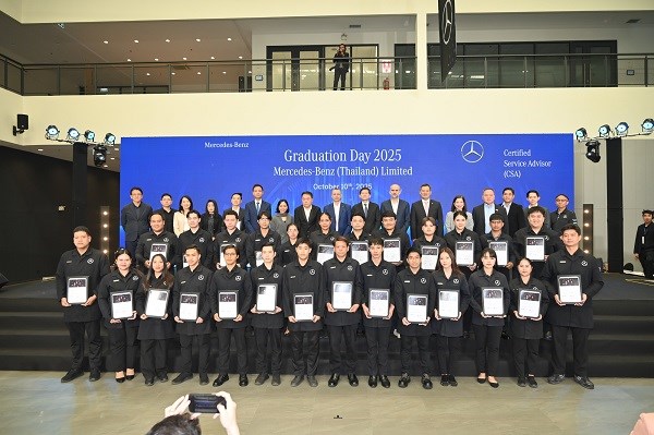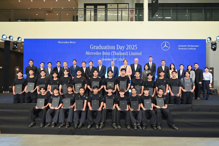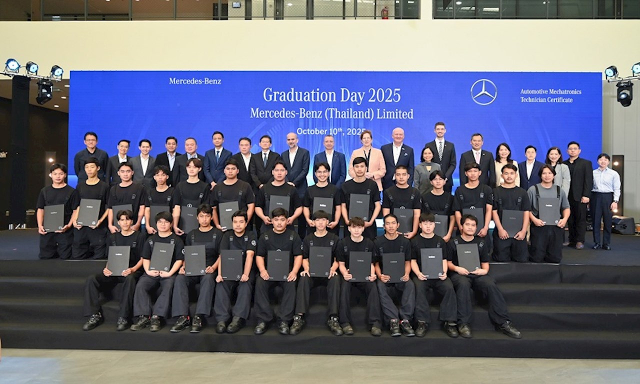 บริษัท เมอร์เซเดส-เบนซ์ (ประเทศไทย) จำกัด จัดงานวันสำเร็จการศึกษาและมอบประกาศนียบัตรให้แก่นักศึกษาช่างฝึกหัดจำนวน 25 คน ที่สำเร็จการศึกษาโครงการฝึกงานนักเรียนช่างฝึกหัดแบบทวิภาคี ในสาขาวิชาช่างเทคนิคยานยนต์เมคคาทรอนิกส์ของเมอร์เซเดส-เบนซ์ รุ่นที่ 34 และ 35 โดยโครงการฝึกงานระยะเวลา 2 ปีนี้ได้รับการรับรองจากหอการค้าและอุตสาหกรรมเยอรมัน (DIHK) ตามมาตรฐานการศึกษาทวิภาคีเยอรมัน-ไทย (GTDEE) ในสาขาเมคคาทรอนิกส์ยานยนต์
