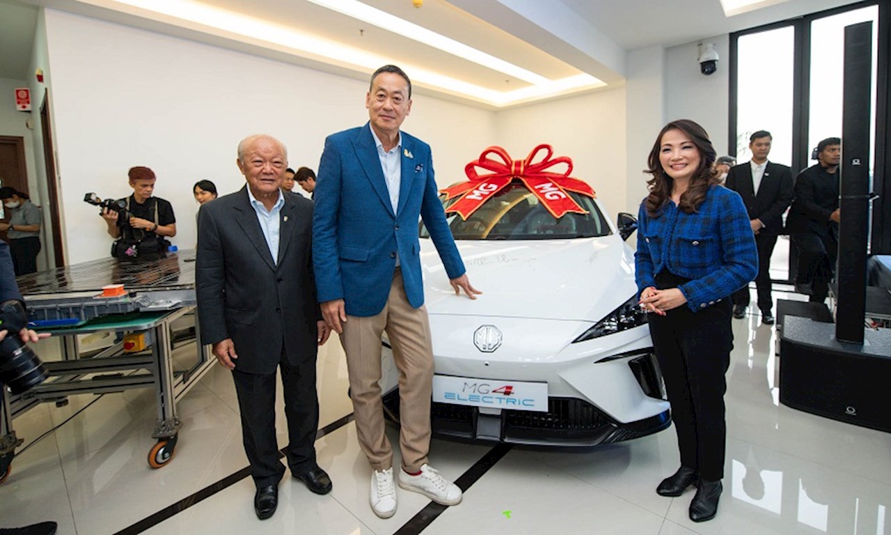 บริษัท เอสเอไอซี มอเตอร์ – ซีพี จำกัด และ บริษัท เอ็มจี เซลส์ (ประเทศไทย) จำกัด ผู้ผลิตและผู้จำหน่ายรถยนต์เอ็มจีในประเทศไทย เปิดโรงงาน ต้อนรับ นายเศรษฐา ทวีสิน นายกรัฐมนตรีและรัฐมนตรีว่าการกระทรวงการคลัง พร้อมด้วยคณะรัฐมนตรี หน่วยงานภาครัฐ และเอกชนรวมกว่า 200 คน เข้าเยี่ยมชมโรงงานประกอบรถยนต์ และโรงงานผลิตแบตเตอรี่อีวี กำลังการผลิต 50,000 แพ็คต่อปี และ ฐานการผลิตรถอีวีที่มีประสิทธิภาพ กับหมุดหมายสำคัญเพื่อเป็น “ฮับอีวี” สำหรับผลิตเพื่อจำหน่ายภายในประเทศและส่งออกไปยังประเทศต่าง ๆ ในภูมิภาคอาเซียน พร้อมตอกย้ำการเป็นแบรด์ผู้บุกเบิกและผู้นำอีวีตัวจริงของไทย ประเดิมเปิดตัว NEW MG4 ELECTRIC Thailand Edition ในฐานะรถอีวีคันแรกของ เอ็มจี ที่ผลิตในประเทศไทย