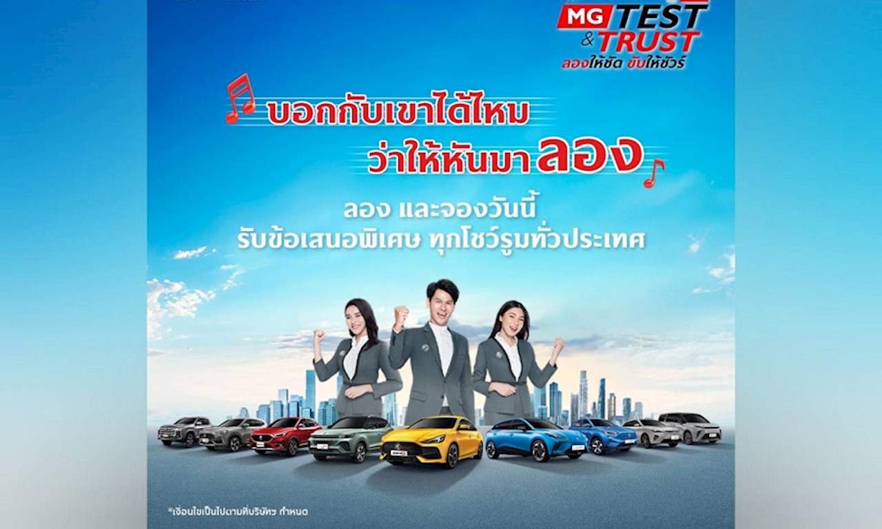 บริษัท เอสเอไอซี มอเตอร์ – ซีพี จำกัด และ บริษัท เอ็มจี เซลส์ (ประเทศไทย) จำกัด ผู้ผลิตและผู้จำหน่ายรถยนต์เอ็มจีในประเทศไทย จัดแคมเปญ ‘MG TEST & TRUST ลองให้ชัด ขับให้ชัวร์’ ชวนผู้ที่สนใจมาลองพิสูจน์ทุกข้อสงสัยกับรถยนต์ เอ็มจี ด้วยประสบการณ์ตรงกับยนตรกรรมมาตรฐานระดับโลกในราคาเอื้อมถึงได้ ตอกย้ำให้เห็นถึงความจริงจังในการเดินหน้าแนวทางการยกระดับธุรกิจด้วย Customer Centric มุ่งเข้าใจและเข้าถึงทุกความต้องการของผู้บริโภค พร้อมรับโปรโมชันพิเศษเมื่อทดสอบและจองรถตั้งแต่วันนี้ เป็นต้นไป