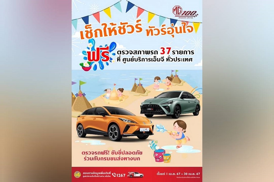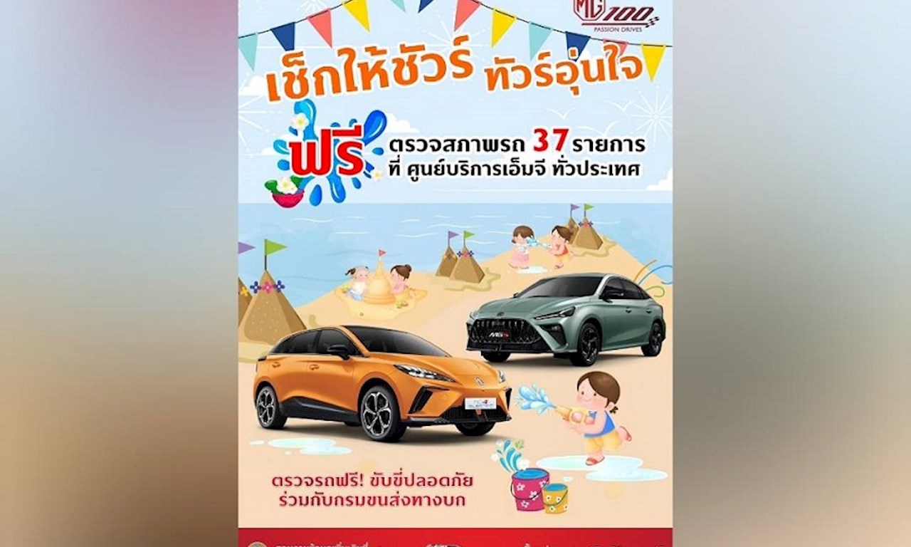 ด้วยความสนใจจากลูกค้าที่ยังคงมีอย่างต่อเนื่อง เอ็มจี จึงขยายระยะเวลาแคมเปญพิเศษในงาน MOTOR SHOW 2024 ไปจนถึงวันที่ 30 เมษายน 2567 โดยสามารถดูรายละเอียดแคมเปญทุกรุ่นได้ที่ https://www.mgcars.com/th/Promotion และให้ความสำคัญกับลูกค้าเอ็มจีปัจจุบัน ผ่านแคมเปญ “เช็กให้ชัวร์ ทัวร์อุ่นใจ” เชิญชวนให้ลูกค้านำรถเข้ารับบริการตรวจเช็กสภาพ ฟรี! สูงสุด 37 รายการ ตั้งแต่วันนี้ – 30 เมษายน 2567 ที่ศูนย์บริการเอ็มจี ทั่วประเทศ เพื่อความอุ่นใจ และเพิ่มความปลอดภัยในการขับขี่ช่วงเทศกาลสงกรานต์ โดยนัดหมายเข้ารับบริการล่วงหน้าที่ศูนย์บริการเอ็มจีกว่า 150 แห่งทั่วประเทศ หรือติดต่อสอบถามเพิ่มเติมที่ศูนย์บริการลูกค้า โทร. 1267