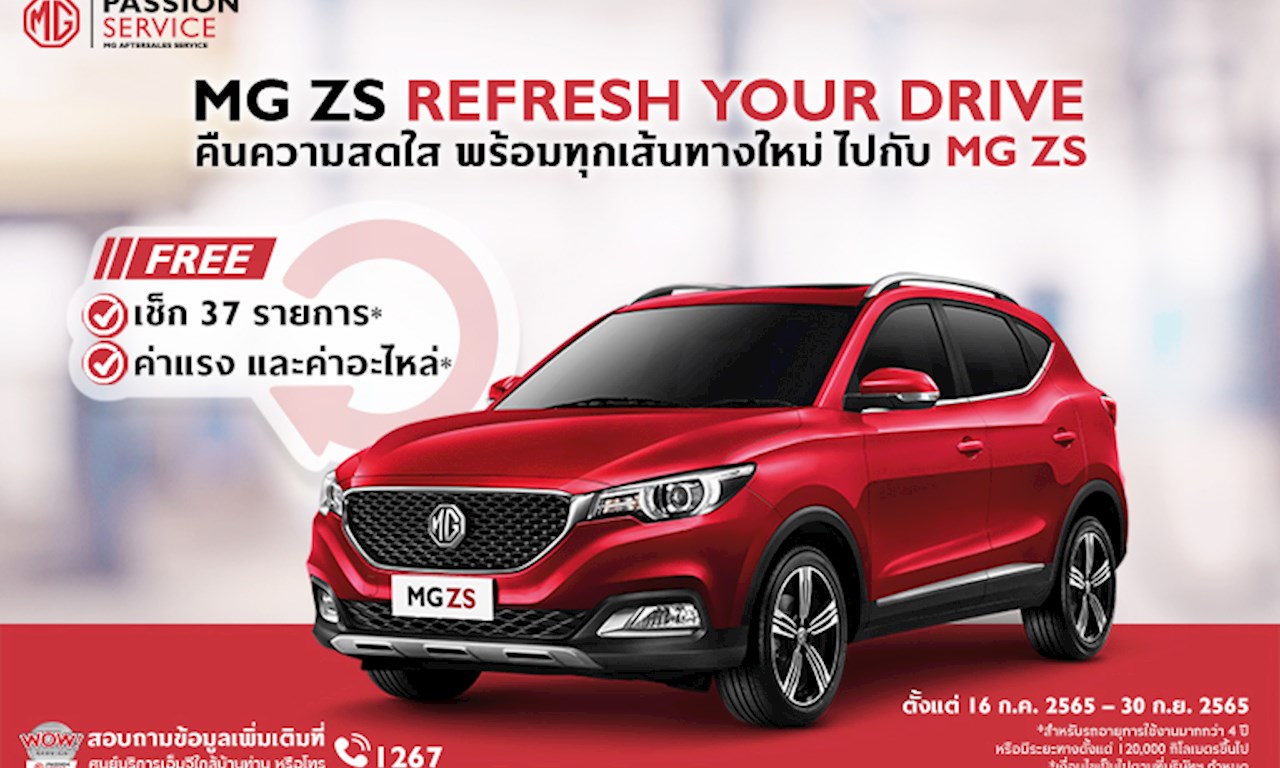 บริษัท เอสเอไอซี มอเตอร์ – ซีพี จำกัด และ บริษัท เอ็มจี เซลส์ (ประเทศไทย) จำกัด ผู้ผลิตและผู้จำหน่ายรถยนต์เอ็มจีในประเทศไทย สะท้อนความมุ่งมั่นในการยกระดับบริการหลังการขายด้วยแคมเปญ “MG ZS REFRESH YOUR DRIVE คืนความสดใส พร้อมทุกเส้นทางใหม่ ไปกับ MG ZS” เพื่อช่วยแบ่งเบาภาระลูกค้าในการดูแลบำรุงรักษารถยนต์ MG ZS ที่อายุการใช้งานเกิน 4 ปี หรือมีระยะทางสะสมตั้งแต่ 120,000 กิโลเมตร ขึ้นไป โดยสามารถเข้ารับบริการตรวจเช็กสภาพรถยนต์ฟรี 37 รายการ* ได้ตั้งแต่วันที่ 16 กรกฎาคม 2565 ถึง 30 กันยายน 2565 สอบถามรายละเอียดเพิ่มเติม หรือนัดหมายเข้ารับบริการล่วงหน้าได้ที่ศูนย์บริการเอ็มจีทั่วประเทศ