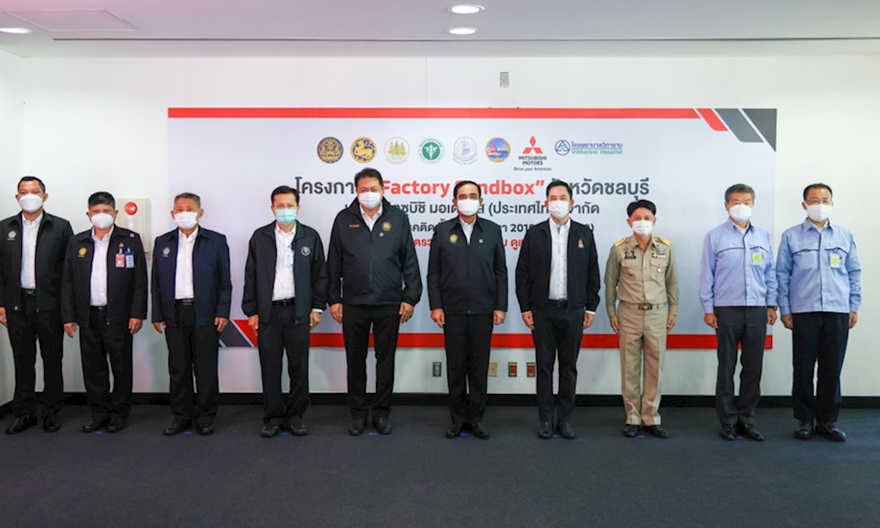 พลเอก ประยุทธ์ จันทร์โอชา นายกรัฐมนตรี พร้อมด้วยนายสุชาติ ชมกลิ่นรัฐมนตรีว่าการกระทรวงแรงงาน นายอิทธิพล คุณปลื้ม รัฐมนตรีว่าการกระทรวงวัฒนธรรม นายสุรชัย ชัยตระกูลทอง ผู้ช่วยรัฐมนตรีประจำกระทรวงแรงงาน คุณสุทธิ สุโกศล ปลัดกระทรวงแรงงาน และคุณภัครธรณ์ เทียนไชย ผู้ว่าราชการจังหวัดชลบุรี และคณะ เข้าตรวจเยี่ยมและรับฟังการรายงานผลความคืบหน้าโครงการ Factory Sandbox พร้อมเยี่ยมเดินชมกิจกรรมการฉีดวัคซีนกลุ่มพนักงาน ณ ศูนย์การผลิตรถยนต์มิตซูบิชิ มอเตอร์ส ประเทศไทย นิคมอุตสาหกรรมแหลมฉบัง จ.ชลบุรี โดยมี มร. โมะริคาซุ ชกกิ ประธานคณะกรรมการบริษัท มิตซูบิชิ มอเตอร์ส (ประเทศไทย) จำกัด พร้อมคณะผู้บริหารให้การต้อนรับ