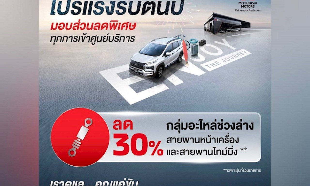 บริษัท มิตซูบิชิ มอเตอร์ส (ประเทศไทย) จำกัด เปิดตัวแคมเปญบริการหลังการขายสุดพิเศษสำหรับเจ้าของรถมิตซูบิชิ ที่หมดระยะเวลาการรับประกัน ด้วยการมอบส่วนลด ร้อยละ 30 สำหรับกลุ่มอะไหล่ช่วงล่าง สายพานหน้าเครื่อง และสายพานไทม์มิ่งที่ร่วมรายการ ช่วยให้ลูกค้าอุ่นใจ คลายกังวลในการใช้งานรถยนต์ที่มีสมรรถนะและความปลอดภัยแม้หมดระยะเวลาการรับประกัน ลูกค้าสามารถนำรถเข้ารับบริการได้ตั้งแต่วันนี้ จนถึงวันที่ 31 มีนาคม 2568