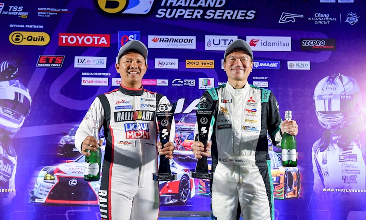 บริษัท มิตซูบิชิ มอเตอร์ส (ประเทศไทย) จำกัด ฉลองความสำเร็จแห่งจิตวิญญาณการแข่งขันที่มุ่งมั่นสู่ชัยชนะที่เป็นดีเอ็นเอสำคัญของมิตซูบิชิ มอเตอร์ส ด้วยการคว้าตำแหน่งขึ้นฉลองชัยบนโพเดียม ปิดท้ายการแข่งขัน Thailand Super Series 2023 สนามสุดท้าย ซึ่งจัดขึ้นทั้งหมด 2 วัน ณ สนามช้าง อินเตอร์เนชั่นแนล เซอร์กิต จังหวัดบุรีรัมย์ ด้วยผลงานจากทีม A-Tech Ralliart Liqui Moly นำโดยนักแข่ง อ๊อป เอกลักษณ์ นาคเกิด รถหมายเลข 16 ที่คว้าตำแหน่งรองชนะเลิศ อันดับที่ 3 จากการแข่งขันใน Division 1 คลาส A ร่วมด้วยทีม Singha TT Motorsport นำโดยนักแข่ง มาร์ค จักรพันธ์ ตันกำเนิด รถหมายเลข 63 ที่คว้าตำแหน่งรองชนะเลิศ อันดับที่ 4 จากการแข่งขันใน Division 2 คลาส C ได้สำเร็จ จากการแข่งขันทั้งในสองวัน รวมทั้งหมด 4 รางวัล