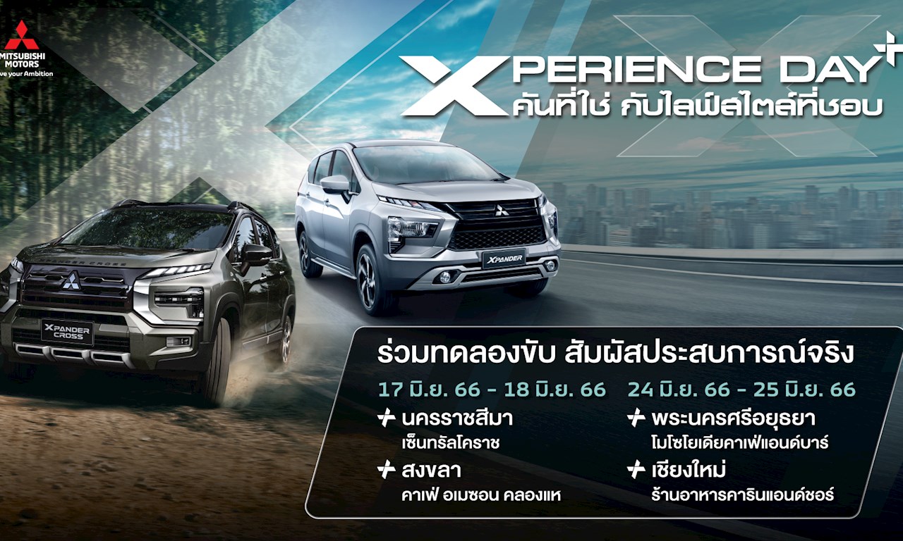 บริษัท มิตซูบิชิ มอเตอร์ส (ประเทศไทย) จำกัด ชวนชาวไทยร่วมทดลองขับรถยนต์ มิตซูบิชิ เอ็กซ์แพนเดอร์ และ มิตซูบิชิ เอ็กซ์แพนเดอร์ ครอส เพื่อสัมผัสประสบการณ์การขับขี่เหนือระดับ พร้อมรับสิทธิพิเศษมากมายเฉพาะในงาน “เอ็กซ์พีเรียนซ์ เดย์ พลัส” XPERIENCE DAY+ คันที่ใช่ กับไลฟ์สไตล์ที่ชอบ ระหว่างวันที่ 17 – 18 มิถุนายน และ 24 – 25 มิถุนายนนี้