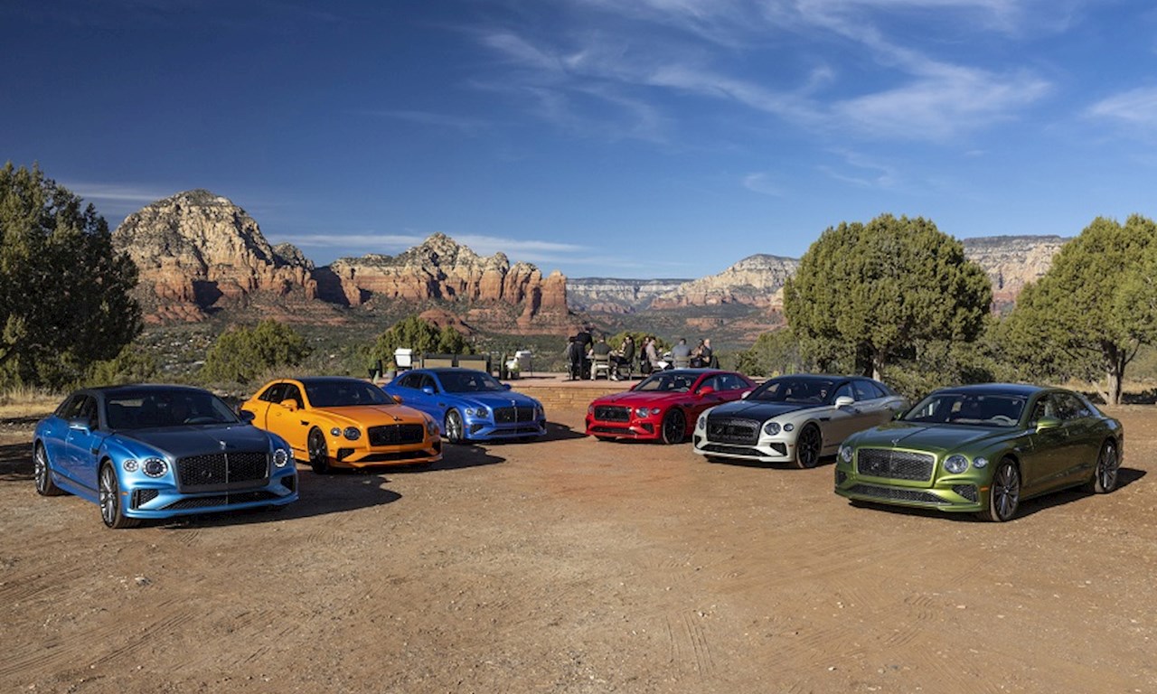 เบนท์ลีย์ มอเตอร์ส เผยภาพ New Flying Spur Speed หลากหลายเฉดสีกับความสปอร์ตและเอกลักษณ์ในแบบเฉพาะตัวด้วยเฉดสีส้ม Mandarin และ เฉดสีฟ้า Neptune หรือในรูปแบบทูโทนอย่างเฉดสีม่วง Damson over เฉดสีขาว White Sand และ เฉดสีเทา Storm Grey over เฉดสีฟ้า Kingfisher พร้อมกับการตกแต่งภายในที่ประณีตและหรูหราแต่แฝงไปด้วยความร่วมสมัยในกิจกรรม Global Media Drive ในรัฐแอริโซนา ประเทศสหรัฐอเมริกา โดย New Flying Spur Speed ถือเป็นซูเปอร์คาร์แบบ 4 ประตูรุ่นแรกของแบรนด์รถยนต์เบนท์ลีย์ และเป็นเจเนอเรชันที่ 4 หลังจากที่ได้เคยสร้างมาตรฐานใหม่ให้กับแกรนด์ทัวเรอร์ระดับหรูสมรรถนะสูงแบบ 4 ประตูมาเกือบสองทศวรรษ