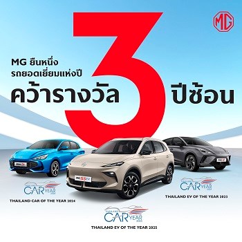 บริษัท เอสเอไอซี มอเตอร์ – ซีพี จำกัด และ บริษัท เอ็มจี เซลส์ (ประเทศไทย) จำกัด ผู้ผลิตและผู้จำหน่ายรถยนต์เอ็มจีในประเทศไทยสะท้อนความมุ่งมั่นในยกระดับอุตสาหกรรมยานยนต์ไทยให้ทัดเทียมอุตสาหกรรมยานยนต์โลก ด้วยการสร้างประวัติศาสตร์เป็นแบรนด์รถยนต์แบรนด์แรกในไทยที่ได้รับรางวัลรถยอดเยี่ยมแห่งปีบนเวทีระดับประเทศได้ต่อเนื่อง 3 ปีซ้อน โดยล่าสุด NEW MG S5 EV รถอีวีมหาชน ได้รับรางวัลอันทรงเกียรติ THAILAND EV OF THE YEAR 2025 จากสมาคมผู้สื่อข่าวรถยนต์และรถจักรยานยนต์ไทย (สรยท.) พร้อมสร้างความเชื่อมั่นด้วยการรับประกันแบตเตอรี่แรงเคลื่อนสูง ชุดมอเตอร์ขับเคลื่อน และชุดควบคุมมอเตอร์ขับเคลื่อน (EV LIFETIME WARRANTY) ตลอดอายุการใช้งาน จนสามารถคว้ารางวัลแคมเปญยอดเยี่ยมแห่งปี จากสมาคมฯ เพื่อส่งมอบความมั่นใจในการใช้รถยนต์ไฟฟ้าให้คนไทย