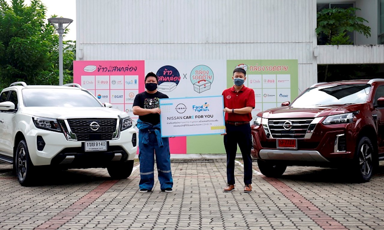 นิสสันสนับสนุนเครือข่าย FOOD FOR FIGHTERS (เครือข่ายข้าวเพื่อหมอ) โดยส่งมอบรถอเนกประสงค์ นิสสัน เทอร์ร่า ใหม่ และรถกระบะที่ กล้า...เพื่อคนแกร่ง นิสสัน นาวารา ใหม่ ให้เป็นกำลังสำคัญสำหรับใช้ปฏิบัติภารกิจจัดส่งอาหารให้กับบุคลากรทางการแพทย์ที่ทำงานอย่างหนักในการต่อสู้วิกฤติโควิด -19 และผู้ป่วยโควิด-19 ซึ่งทำการรักษาตัวอยู่ที่บ้าน (Home Isolation) ตามชุมชนต่าง ๆ ถือเป็นการสานต่อโครงการนิสสัน CARE FOR YOU แทนความห่วงใยจาก นิสสัน สู่ชุมชนอย่างต่อเนื่อง