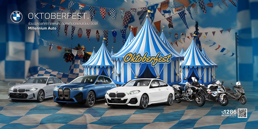 บริษัท มิลเลนเนียม ออโต๊ กรุ๊ป จำกัด ผู้จำหน่ายรถยนต์ บีเอ็มดับเบิลยู, มินิ และ บีเอ็มดับเบิลยู มอเตอร์ราด อย่างเป็นทางการ ภายใต้บริษัท มิลเลนเนียม กรุ๊ป คอร์ปอเรชั่น (เอเชีย) จำกัด (มหาชน) หรือ MGC-ASIA ร่วมฉลองเทศกาลระดับโลก ‘OKTOBER FEST’ และ ‘LONDON FEST’ ในเดือน 10 หยิบยื่นข้อเสนอสุดคุ้มค่า จัดเต็มทั้ง ดาวน์ 0% ดอกเบี้ยต่ำ, iPhone 16 Pro 256 GB และอีกหลากหลายสิทธิพิศษ เติมเต็มความสุขให้ลูกค้าแบบไม่รู้จบ วันนี้ ถึง 31 ตุลาคม 2567 ที่โชว์รูม บีเอ็มดับเบิลยู มิลเลนเนียม ออโต้ และ มินิ มิลเลนเนียม ออโต้ ทุกสาขา ทั่วประเทศ