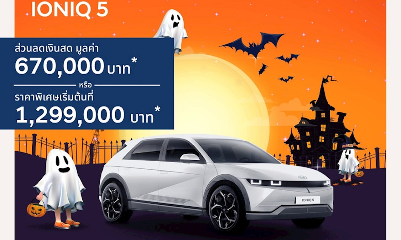 ฮุนได โมบิลิตี้ (ประเทศไทย) มอบข้อเสนอสุดคุ้มในช่วงโค้งสุดท้ายให้คนไทยเป็นเจ้าของ IONIQ 5 พรีเมียม EV นำเข้าจากเกาหลีทั้งคัน ด้วยส่วนลดเงินสดสูงสุด 670,000 บาท หรือในราคาเริ่มต้นเพียง 1.299 ล้านบาท พร้อมเปิดตัวแคมเปญเดือนตุลาคม “Hyundai Spooky Deal – ดีลนี้มีแต่ Treat ไม่มี Trick” ที่ลูกค้าสามารถเลือกเองได้ไม่ว่าจะเป็น ดาวน์เริ่มต้น 0% หรือ ดอกเบี้ยต่ำสุด 0%
