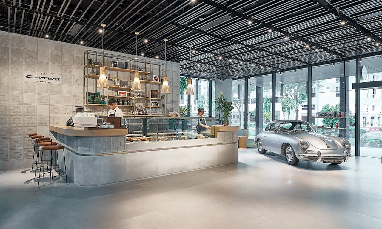 ในบริเวณนี้มีคาเฟ่ คาร์เรร่า ซึ่งดำเนินการโดย Baker & Cook พร้อมที่จะเสิร์ฟอาหารและกาแฟสูตรพิเศษ เพื่อช่วยให้ช่วงเวลาแห่งการท่องประวัติศาสตร์และวรรณกรรมของผู้ที่ชื่นชอบแบรนด์ปอร์เช่สมบูรณ์แบบยิ่งขึ้น การมีคาเฟ่อยู่ในสตูดิโอ ถือเป็นแนวคิดแรกของโลกสำหรับปอร์เช่ สตูดิโอ ในขณะที่ดื่มด่ำไปกับเมนูเลิศรสที่รังสรรค์ขึ้น เพื่อเติมพลังให้กับร่างกายและจิตวิญญาณ ขณะเดียวกันก็รายล้อมไปด้วยเสน่ห์ของรถสปอร์ตอันเป็นเอกลักษณ์