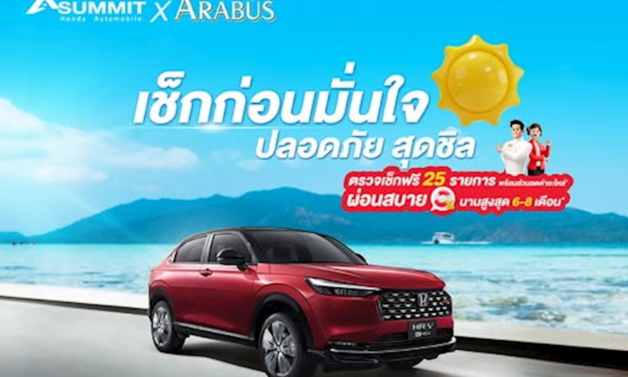 ซัมมิท ฮอนด้า ออโตโมบิล ผู้แทนจำหน่าย รถยนต์ ฮอนด้า อย่างเป็นทางการ ภายใต้บริษัท มิลเลนเนียม กรุ๊ป คอร์ปอเรชั่น (เอเชีย) จำกัด (มหาชน) หรือ MGC-ASIA นำโดย คุณทวีวัฒน์ ปรุงพัฒนสกุล ผู้จัดการทั่วไป ฝ่ายขายและการตลาด พร้อมด้วยคุณวิวัฒน์ กิจเครือ ผู้จัดการทั่วไป ฝ่ายบริการหลังการขาย บริษัท ซัมมิท ฮอนด้า ออโตโมบิล จำกัด จับมือแบรนด์กาแฟ ARABUS โดยคุณจิราภรณ์ ขันธโสธร ผู้จัดการฝ่ายการตลาด บริษัท ดัชมิลล์ จำกัด ชูแคมเปญ ‘เช็กก่อนมั่นใจ ปลอดภัย สุดชิลล์’ รับฟรี ARABUS CHILL CUP กาแฟดริปพร้อมดื่ม คัดสรรกาแฟอาราบิก้าแท้ 100% สกัดแบบดริปอย่างพิถีพิถัน ให้รสชาติ นุ่ม ละมุน เหมือนได้ดื่มกาแฟสดคาเฟ่สไตล์ เมื่อนำรถมาเช็กสภาพฟรี 25 รายการ ก่อนเดินทางช่วงเทศกาลวันหยุด พร้อมโปรโมชั่นผ่อนสบายนานสูงสุด 6-8 เดือน วันนี้ ถึง 12 เมษายน ที่โชว์รูม ซัมมิท ฮอนด้า ทั้ง 4 สาขา คือ หัวหมาก, พัฒนาการ, อุดมสุข และบางนา กม. 4.5