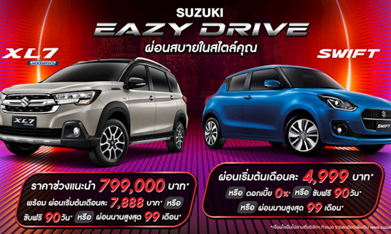 ทั้งนี้ เพื่อเตรียมรองรับการแข่งขันในตลาดในช่วงครึ่งปีหลัง พร้อมกับตอบรับความต้องการของลูกค้าต้องการเป็นเจ้าของผลิตภัณฑ์จากซูซูกิ ให้สามารถเข้าถึงและตัดสินใจได้ง่ายมากยิ่งขึ้น จึงเตรียมนำเสนอแคมเปญพิเศษ “SUZUKI EAZY DRIVE ผ่อนสบายในสไตล์คุณ” ให้ลูกค้าสามารถเลือกรับข้อเสนอสุดคุ้ม ผ่อนง่าย จ่ายสบาย มากกว่าที่เคย โดยสามารถเลือกรับดอกเบี้ย 0% หรือ ขับฟรี 90 วัน พร้อมฟรีประกันภัยชั้นหนึ่ง โดยแคมเปญ “SUZUKI EAZY DRIVE ผ่อนสบายในสไตล์คุณ” เริ่มตั้งแต่วันนี้ 1 มิถุนายน – 30 มิถุนายน 2567 ซึ่งมีรายละเอียดดังนี้