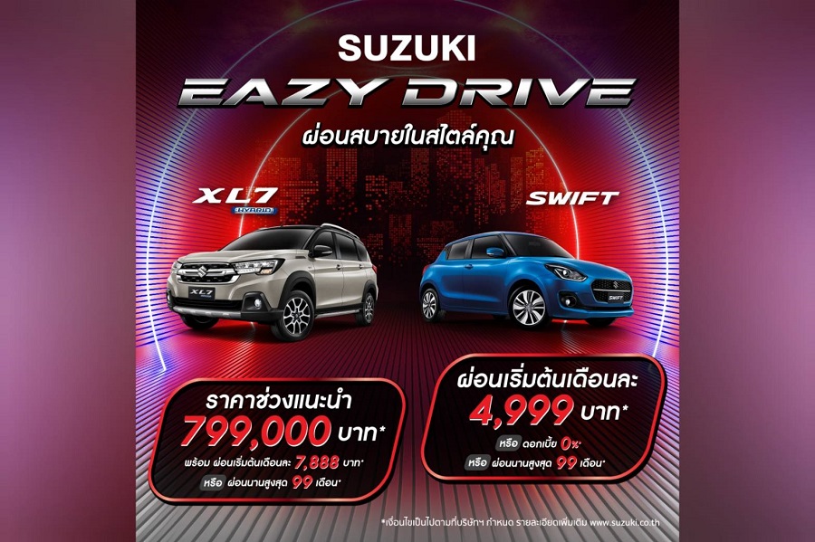 โดยในโอกาสพิเศษนี้เพื่อเป็นการขอบคุณลูกค้าทุกท่าน ซูซูกิได้ทำการขยายเวลาการมอบแคมเปญสุดพิเศษ โดยมอบข้อเสนอที่ดีที่สุดและคุ้มค่าที่สุด ให้แก่ผู้ที่ต้องการเป็นเจ้าของผลิตภัณฑ์จากซูซูกิ ให้สามารถเข้าถึงและตัดสินใจได้ง่ายมากยิ่งขึ้น กับแคมเปญ “SUZUKI EAZY DRIVE ผ่อนสบายในสไตล์คุณ” ให้ลูกค้าสามารถเลือกรับข้อเสนอสุดคุ้ม ผ่อนง่าย จ่ายสบาย มากกว่าที่เคย โดยสามารถเลือกรับดอกเบี้ย 0% ผ่อนนานสูงสุด 99 เดือน เริ่มต้นเพียงเดือนละ 2,999 บาท พร้อมฟรีประกันภัยชั้นหนึ่ง โดยแคมเปญ “SUZUKI EAZY DRIVE ผ่อนสบายในสไตล์คุณ” เริ่มตั้งแต่วันที่ 1-31 กรกฎาคม 2567 ซึ่งมีรายละเอียด ดังนี้