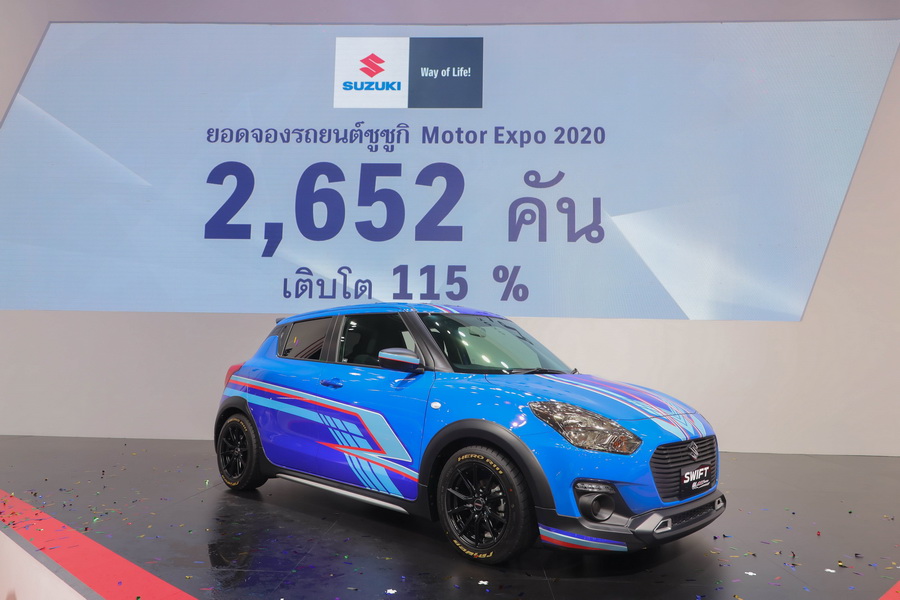 นายมิโนรุ อามาโนะ กรรมการผู้จัดการใหญ่ บริษัท ซูซูกิ มอเตอร์ (ประเทศไทย) จำกัด กล่าวว่า สำหรับงานมหกรรมยานยนต์ ครั้งที่ 37 หรือ Thailand International Motor Expo 2020 ที่ผ่านมา จำนวนการเข้าชมงานของผู้บริโภคสุดคึกคัก สร้างบรรยากาศของการซื้อ-ขายระหว่างผู้บริโภคและผู้จำหน่ายได้เป็นอย่างดี ส่งผลให้ยอดจองรถยนต์ซูซูกิภายในงานครั้งนี้พุ่งสูงทะลุเป้า โดยมียอดจองรวมอยู่ที่ 2,652 คัน ซึ่ง SUZUKI SWIFT แฮทช์แบ็กอีโคคาร์ ยังคงได้รับกระแสความนิยมจากลูกค้าอย่างต่อเนื่อง และเป็นรุ่นที่มียอดจองสูงที่สุด