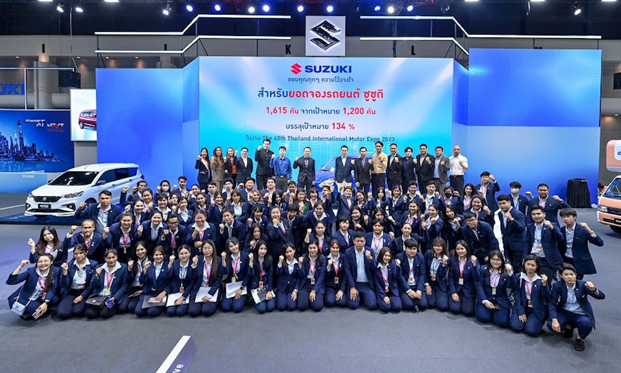 สำหรับซูซูกิ ยังคงเป็นแบรนด์ที่ได้รับความไว้วางใจจากลูกค้า ด้วยผลิตภัณฑ์ที่มีคุณภาพดี การออกแบบรูปลักษณ์ทั้งภายนอกภายในที่โดนใจคนไทย ผู้บริโภคจึงมั่นใจที่จะเลือกเป็นเจ้าของรถยนต์ซูซูกิ เพื่อตอบโจทย์การใช้งานในชีวิตประจำวัน เฉพาะอย่างยิ่งกับ SUZUKI SWIFT แฮทช์แบ็กคอมแพคคาร์ ยังเป็นรถยนต์นั่งขนาดเล็กที่เข้าไปอยู่ในใจคนไทยและได้รับการยอมรับอย่างต่อเนื่อง พิสูจน์ได้จากการที่เป็นรถที่มียอดจองสูงที่สุดของซูซูกิ ส่งผลให้ยอดจองรถยนต์ซูซูกิภายในงานครั้งนี้ มีจำนวน 1,615 คัน จากเป้าหมาย 1,200 คัน บรรลุเเป้าหมายที่วางไว้มากถึง 134% โดยยอดการจองในแต่ละรุ่นแบ่งเป็นดังนี้