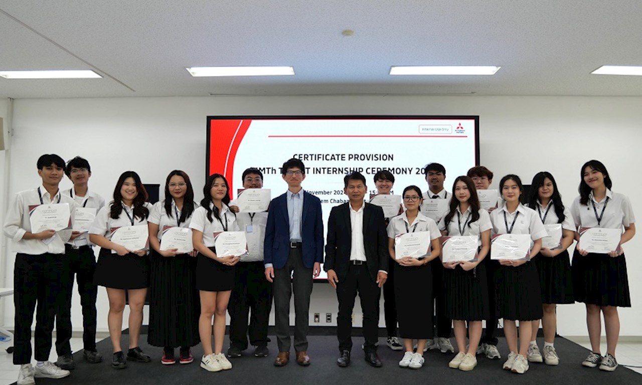บริษัท มิตซูบิชิ มอเตอร์ส (ประเทศไทย) จำกัด มอบรางวัลให้แก่ผู้ชนะการประกวดโครงการฝึกงานยอดเยี่ยม (Top 5 Internship Project Award) พร้อมมอบประกาศนียบัตรให้แก่นักศึกษา ที่สำเร็จหลักสูตรฝึกงานจากโครงการ ‘MMTh Talent Internship Program’ ครั้งที่ 6 ประจำปี 2567 โดยโครงการนี้เปิดโอกาสให้นักศึกษาริเริ่มและสร้างสรรค์โครงการที่สนับสนุนการพัฒนาการดำเนินงานของบริษัทสู่ความเป็นเลิศ เพื่อให้นักศึกษาได้มีโอกาสนำความรู้เชิงทฤษฎีมาปรับใช้กับการทำงานจริง ทั้งยังส่งเสริมการเรียนรู้อย่างเต็มรูปแบบนอกห้องเรียน อีกทั้งเตรียมความพร้อมสำหรับการประกอบอาชีพในอนาคต
