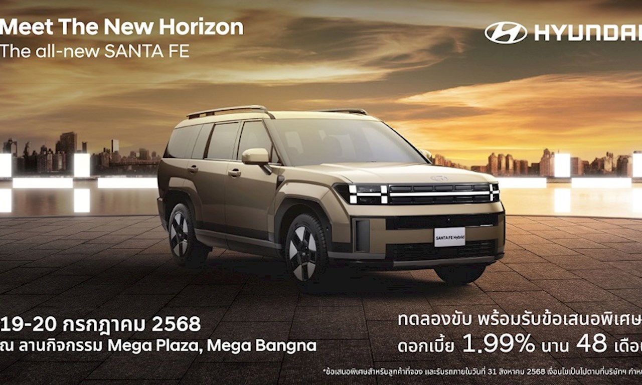 หลังจากสร้างแรงสั่นสะเทือนครั้งใหญ่ให้กับวงการยานยนต์ไทยในการเปิดตัว “The all-new SANTA FE” ที่ได้รับกระแสตอบรับอย่างล้นหลามจากดีไซน์ทรงเหลี่ยม (Boxy Design) สุดโฉบเฉี่ยวและขุมพลังไฮบริด 1.6 Turbo 232 แรงม้า ล่าสุด ฮุนได โมบิลิตี้ (ประเทศไทย) เชิญชวนผู้บริโภคสัมผัสยนตรกรรมสุดยอด D-SUV เจเนอเรชันใหม่ที่จะกลายเป็นสัญลักษณ์แห่งวิสัยทัศน์และอนาคตในงาน “The all-new SANTA FE: Meet The New Horizon” ระหว่างวันที่ 19–20 กรกฎาคม 2568 ณ ลานโปรโมชั่น ชั้น 1 ศูนย์การค้าเมกะบางนา