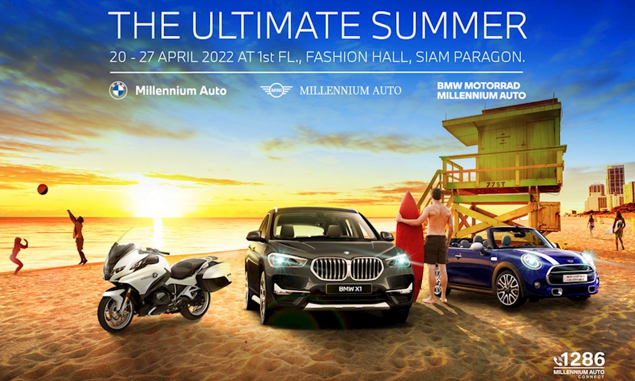 บริษัท มิลเลนเนียม ออโต้ กรุ๊ป จำกัด ผู้จำหน่ายรถยนต์ บีเอ็มดับเบิลยู, มินิ และมอเตอร์ไซค์ บีเอ็มดับเบิลยู มอเตอร์ราด อย่างเป็นทางการ จัดหนักรับซัมเมอร์ ด้วยข้อเสนอสุดร้อนแรง ที่งาน “The Ultimate Summer By Millennium Auto” ยกทัพยนตรกรรมระดับพรีเมียม มาให้ลูกค้าได้สัมผัสและจับจอง ระหว่างวันที่ 20-27 เมษายนนี้ บริเวณแฟชั่นฮอลล์ ชั้น 1 ศูนย์การค้าสยามพารากอน