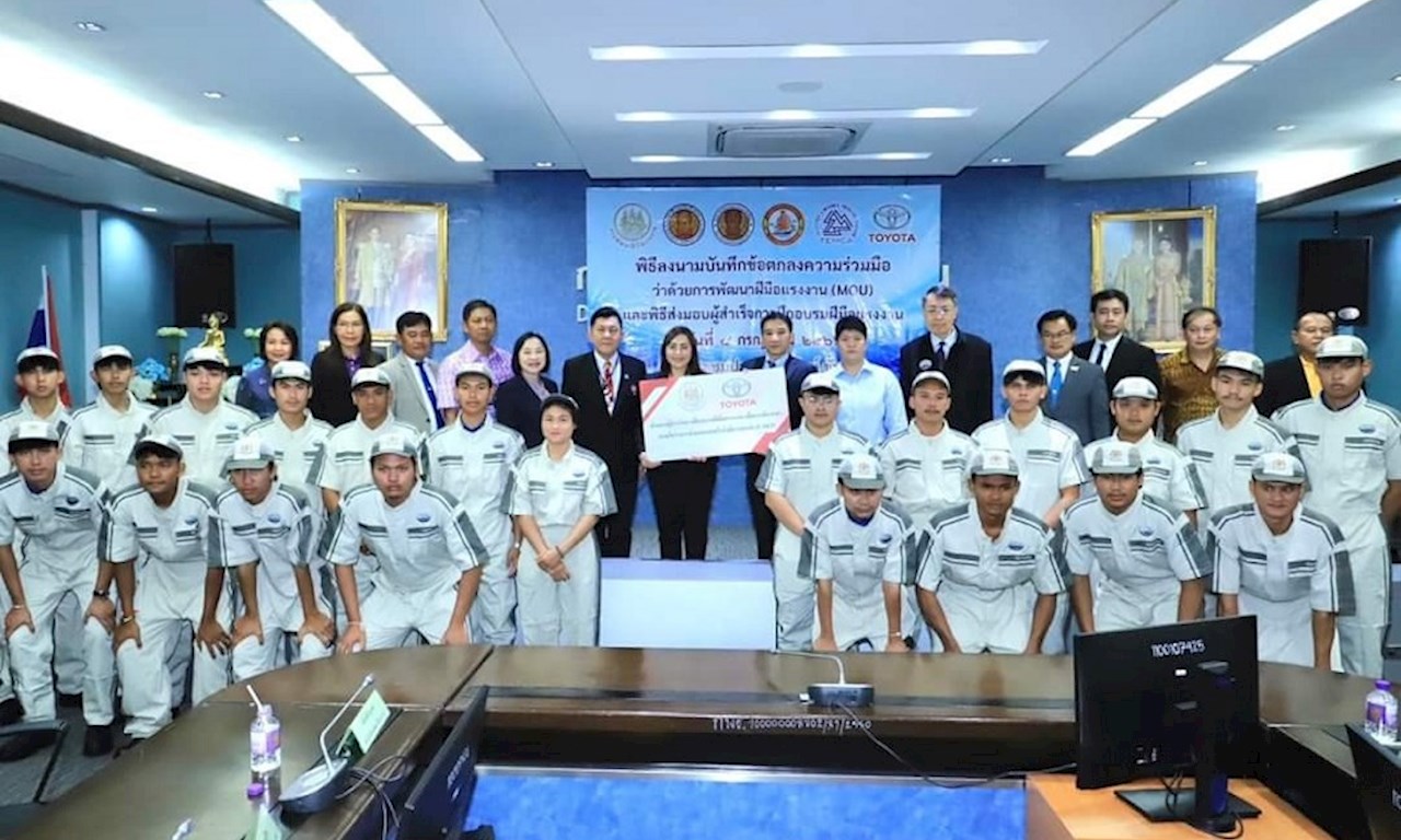 ศูนย์การศึกษาและฝึกอบรมโตโยต้า บริษัท โตโยต้า มอเตอร์ ประเทศไทย จำกัด ร่วมพิธีส่งมอบผู้สำเร็จการฝึกอบรม หลักสูตรช่างซ่อมตัวถัง และพ่นสีรถยนต์ โดยมี นางสาวบุปผา เรืองสุด อธิบดีกรมพัฒนาฝีมือแรงงาน เป็นประธานในพิธี ทำการส่งมอบผู้สำเร็จการฝึกอบรม จำนวน 21 คน เข้าทำงานกับ บริษัท โตโยต้าวัน จำกัด ภายใต้โครงการเพิ่มทักษะด้านอาชีพแก่นักเรียนที่ไม่ได้เรียนต่อหลังจบการศึกษาภาคบังคับ