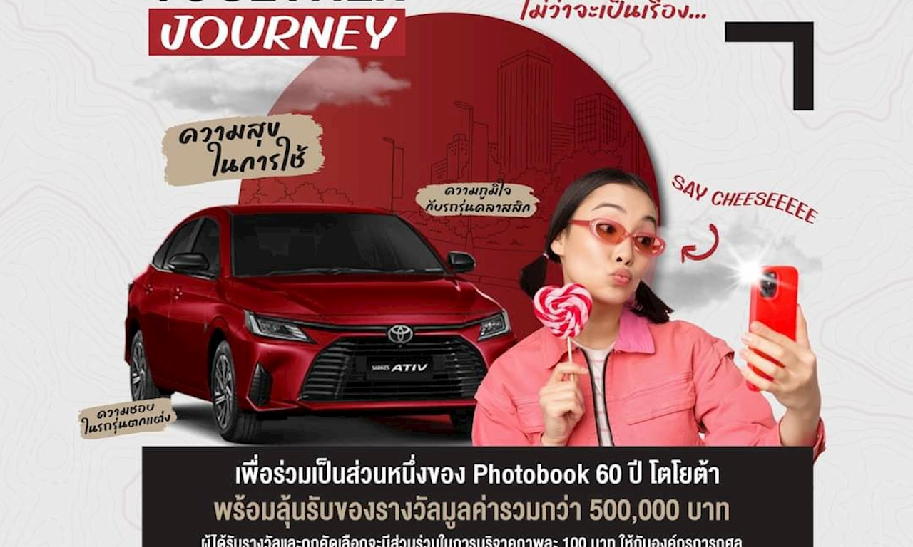 เนื่องในโอกาสที่ บริษัท โตโยต้า มอเตอร์ ประเทศไทย จำกัด ดำเนินธุรกิจในประเทศไทยครบ 60 ปีในปีนี้ ขอเชิญทุกท่านร่วมเป็นส่วนหนึ่งในการบันทึกภาพแห่งความประทับใจ ”ความสุข ความผูกพัน และความภาคภูมิใจ กับรถยนต์โตโยต้า” นับจากอดีตจนถึงปัจจุบัน ผ่านโครงการ “Toyota 60th Anniversary Photobook” ขยายเวลาส่งภาพถ่ายเข้าร่วมโครงการถึงวันนี้ถึง 31 ตุลาคม ศกนี้ พร้อมรับของรางวัลสุดพิเศษ