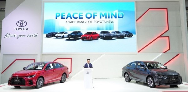 นายศุภกร รัตนวราหะ รองกรรมการผู้จัดการใหญ่ บริษัท โตโยต้า มอเตอร์ ประเทศไทย จำกัด กล่าวเปิดบูธโตโยต้าว่า “ ปีนี้ เรานำเสนอรถยนต์หลากหลายรุ่น ข้อเสนอสุดพิเศษ และบริการตลอดอายุการใช้งานแบบครบวงจร นำโดย YARIS ATIV HEV รุ่นใหม่ ที่เพิ่งเปิดตัวอย่างเป็นทางการ กับ 2 รุ่นย่อย คือ รุ่น HEV Premium ที่มาพร้อม ขุมพลังเครื่องยนต์ไฮบริด ขนาด 1.5 ลิตร ประหยัดสูงสุด ด้วยอัตราการใช้เชื้อเพลิง 29.4 กม.ต่อลิตร และมาตรฐานความปลอดภัยครบครันและรุ่น HEV GR Sport ปรับจูนช่วงล่างพิเศษ ให้ขับสนุก พร้อมการตกแต่งแนวสปอร์ต ทั้งภายในและภายนอก อีกทั้งยังมีรถยนต์ไฮบริด อีกหลายรุ่น ที่เรานำมาให้ทุกท่านได้สัมผัสภายในงาน เช่น CAMRY และ COROLLA ALTIS HEV GR SPORT SUV ยอดนิยม ทั้ง Yaris Cross และ Corolla Cross รถยนต์อเนกประสงค์ 7 ที่นั่ง INNOVA ZENIX และ MPV สุดหรู Alphard โดยลูกค้าทุกท่านสามารถมั่นใจในรถยนต์ไฮบริดทุกรุ่นจากโตโยต้าด้วยการรับประกันแบตเตอรี่ไฮบริดยาวนานถึง 10 ปี