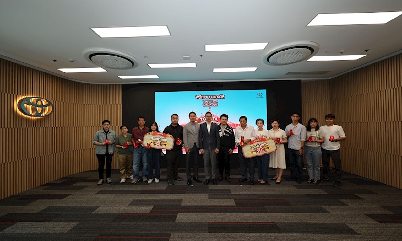 บริษัท โตโยต้า มอเตอร์ ประเทศไทย จำกัด ร่วมแสดงความยินดีกับผู้โชคดี จากกิจกรรม “TOYOTA CARNIWOW เทศกาลออกรถสุดว้าว” ที่ได้รับ ทองคำแท่ง 30 บาท และ ทองคำแท่ง 5 บาท โดยมี นายณัทธร ศรีนิเวศน์ ผู้ช่วยกรรมการผู้จัดการใหญ่ พร้อมด้วย นายสมุทร ตังคชวนะ ผู้อำนวยการฝ่ายการตลาดรถยนต์นั่ง บริษัท โตโยต้า มอเตอร์ ประเทศไทย จำกัด เป็นผู้มอบรางวัล เมื่อวันที่ 1 เมษายน 2568 ณ TOYOTA ALIVE บางนา